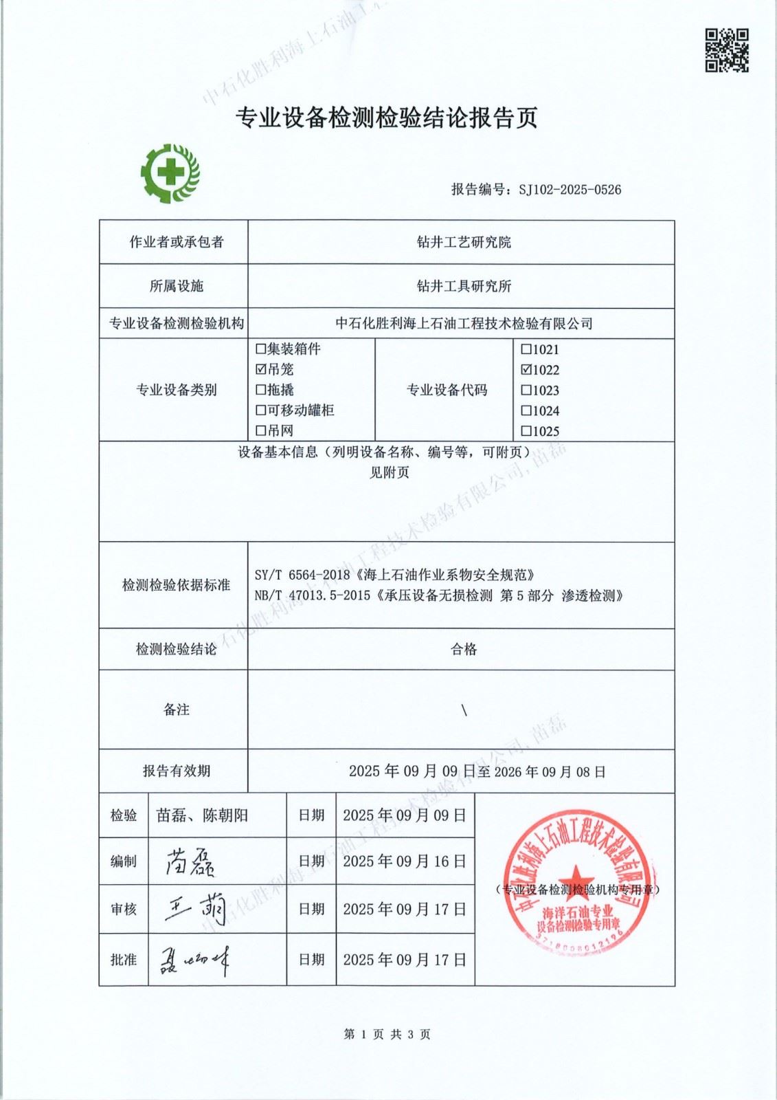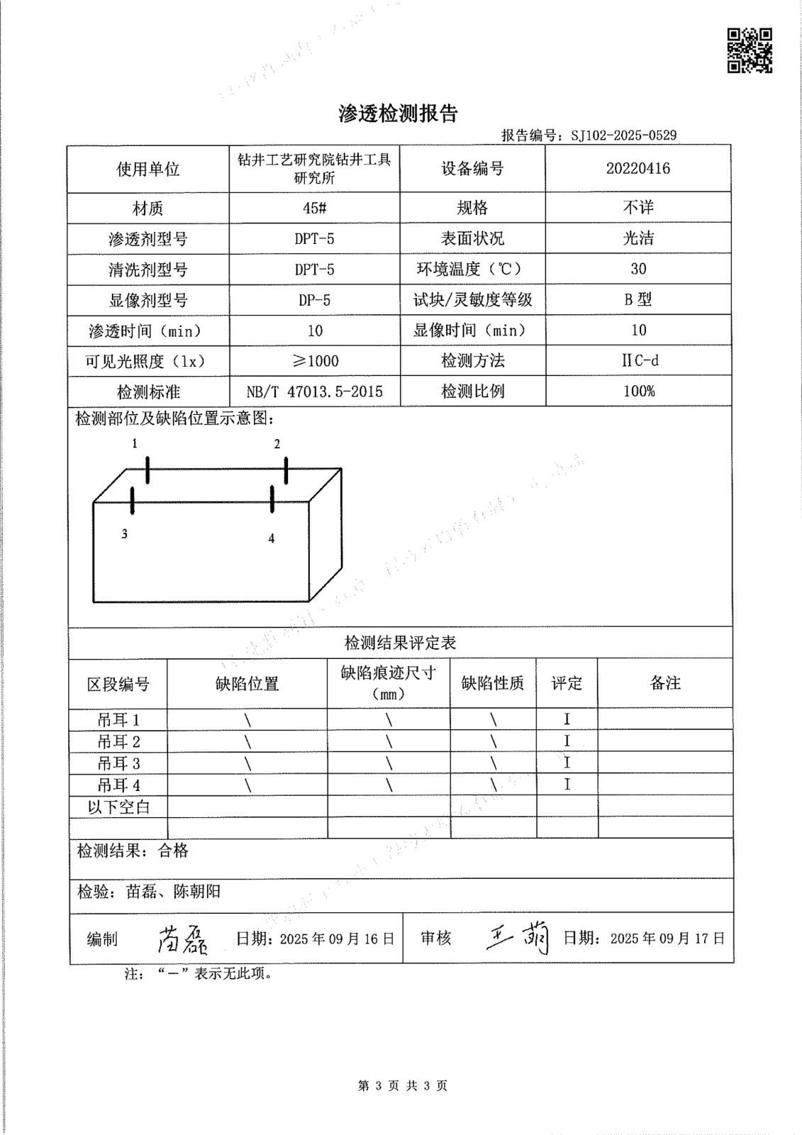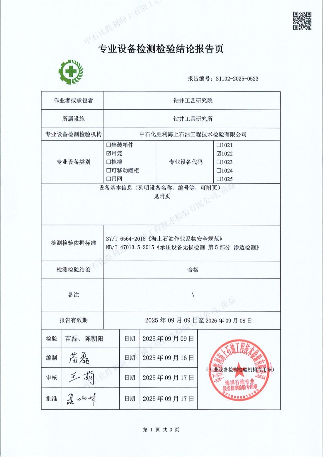 1、使用单位:钻井工艺研究院钻井工具研究所