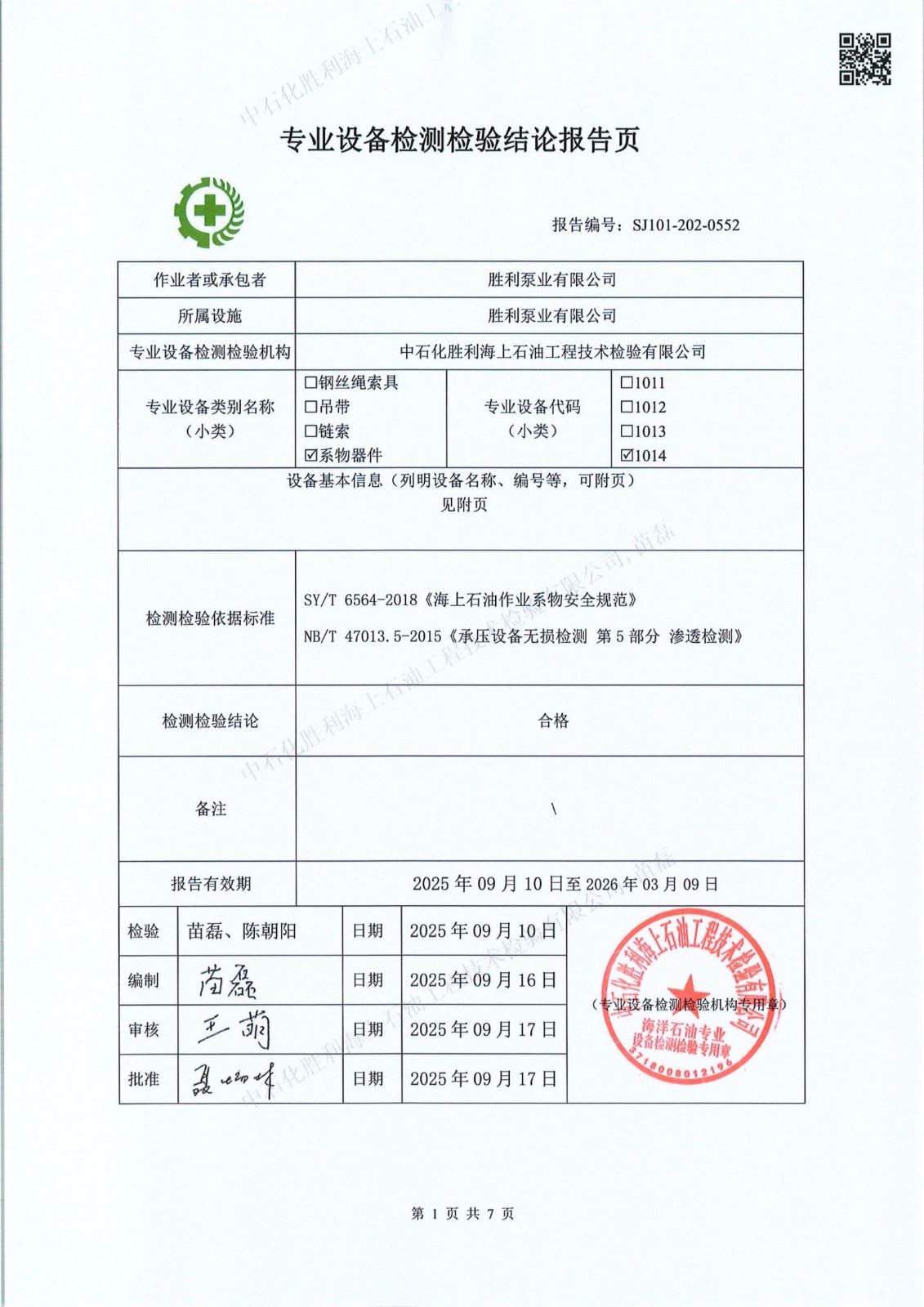 石化胜利海上石油工技术检验有限公司