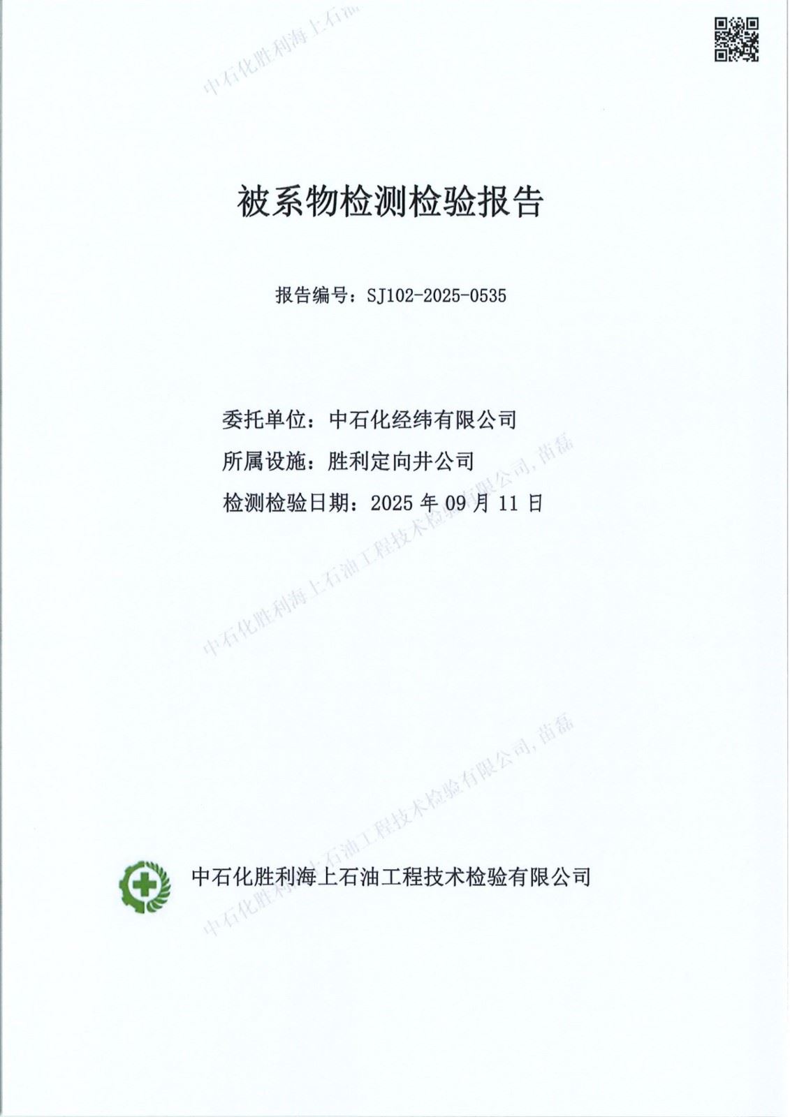 1、使用单位:中石化经纬有限公司胜利定向井公司