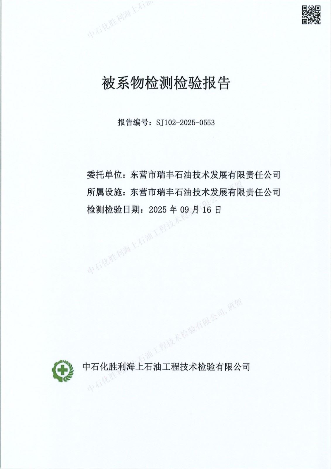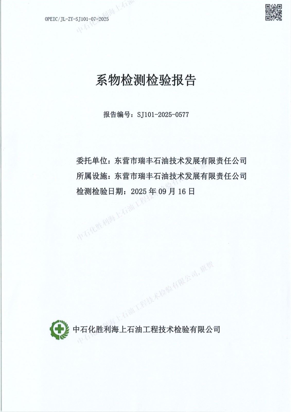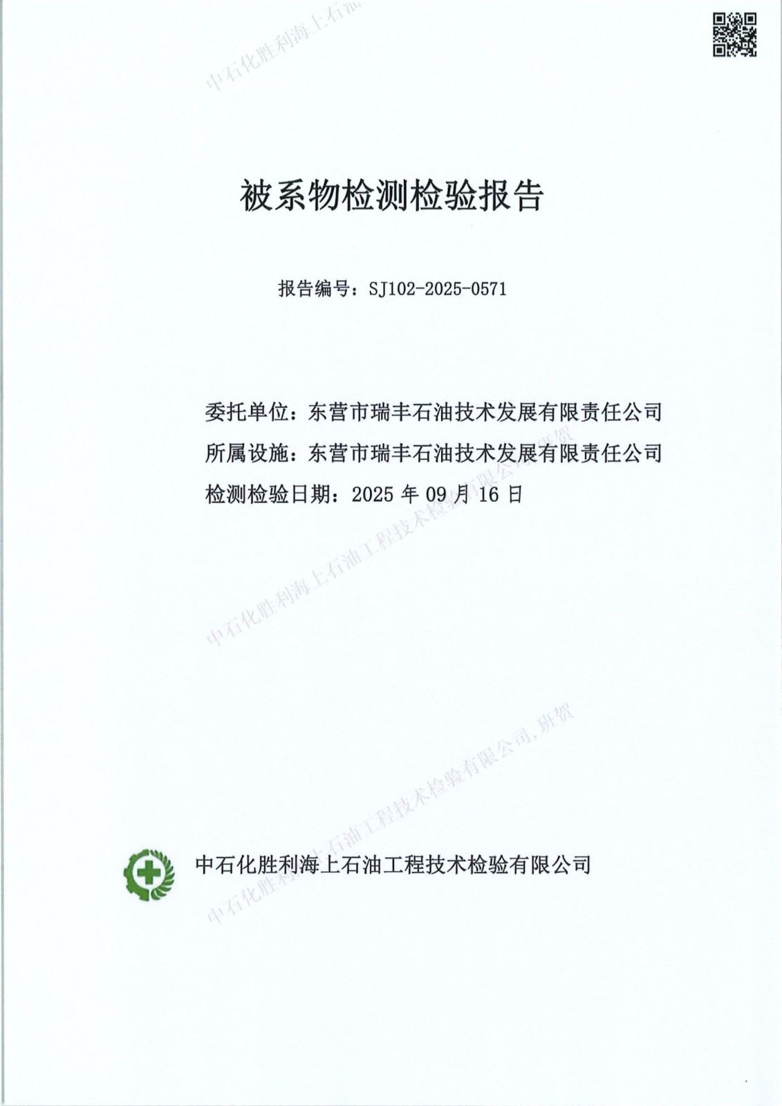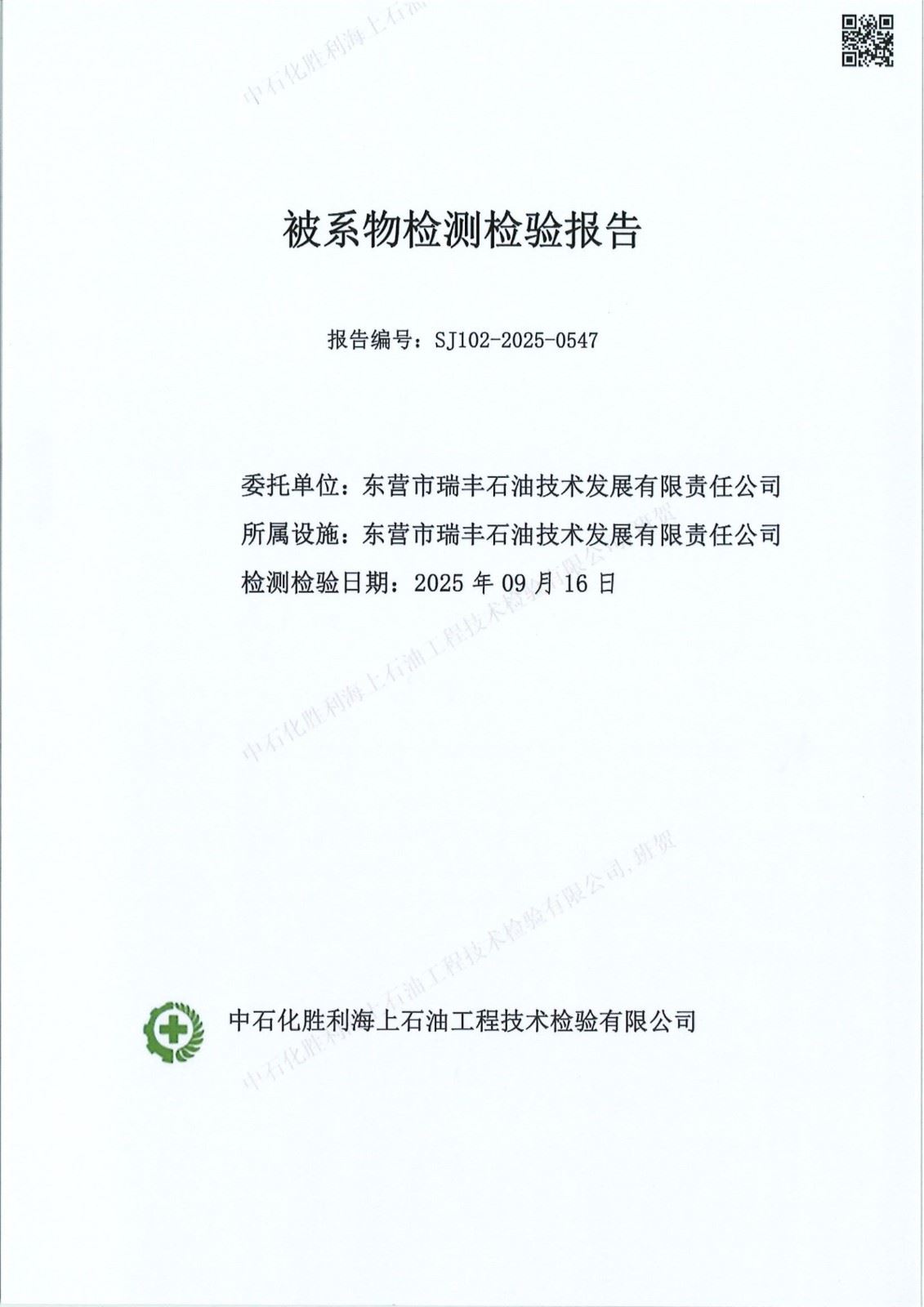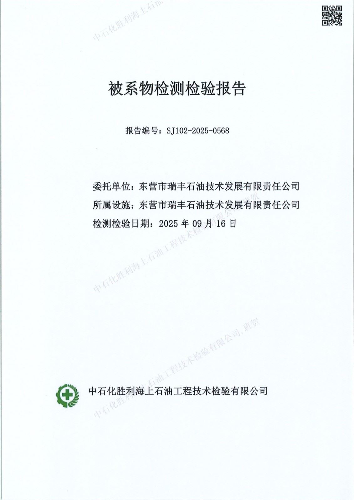 1、使用单位:东营市瑞丰石油技术发展有限责任公司