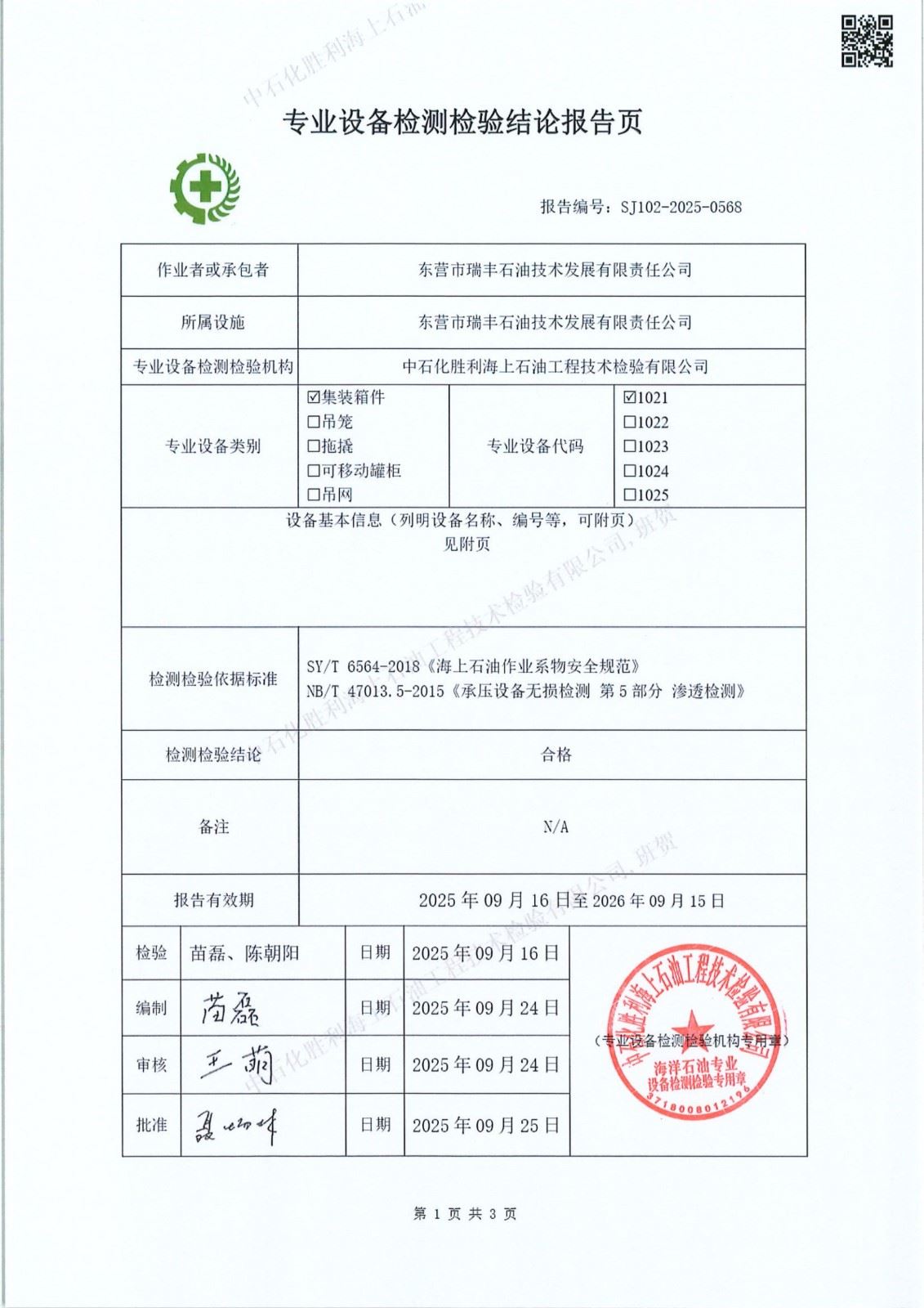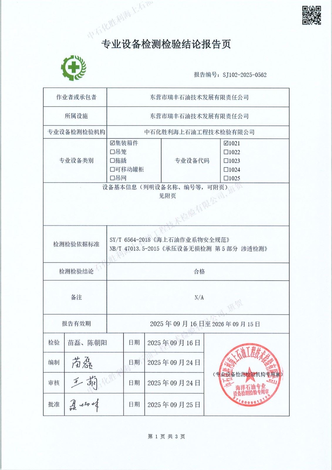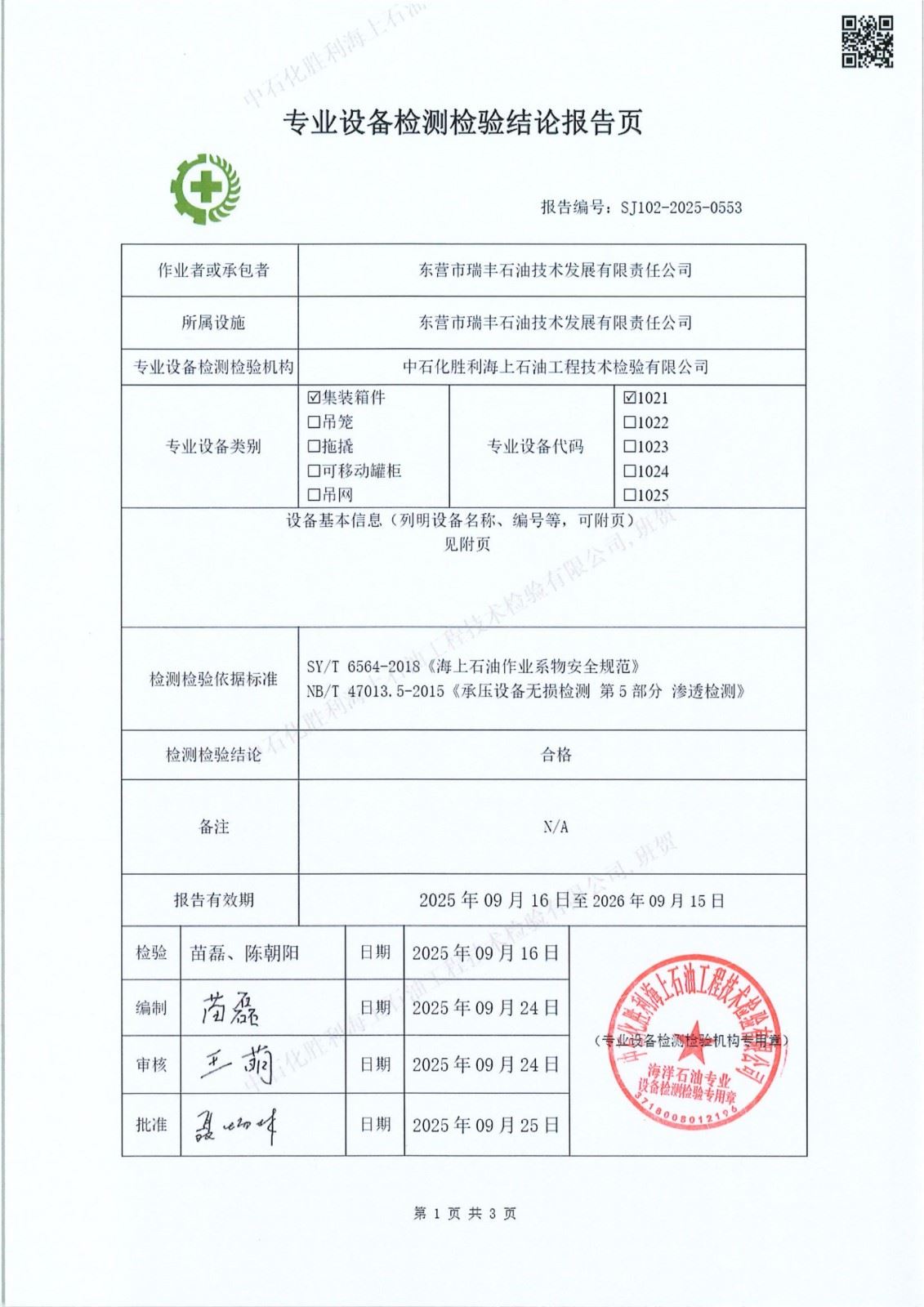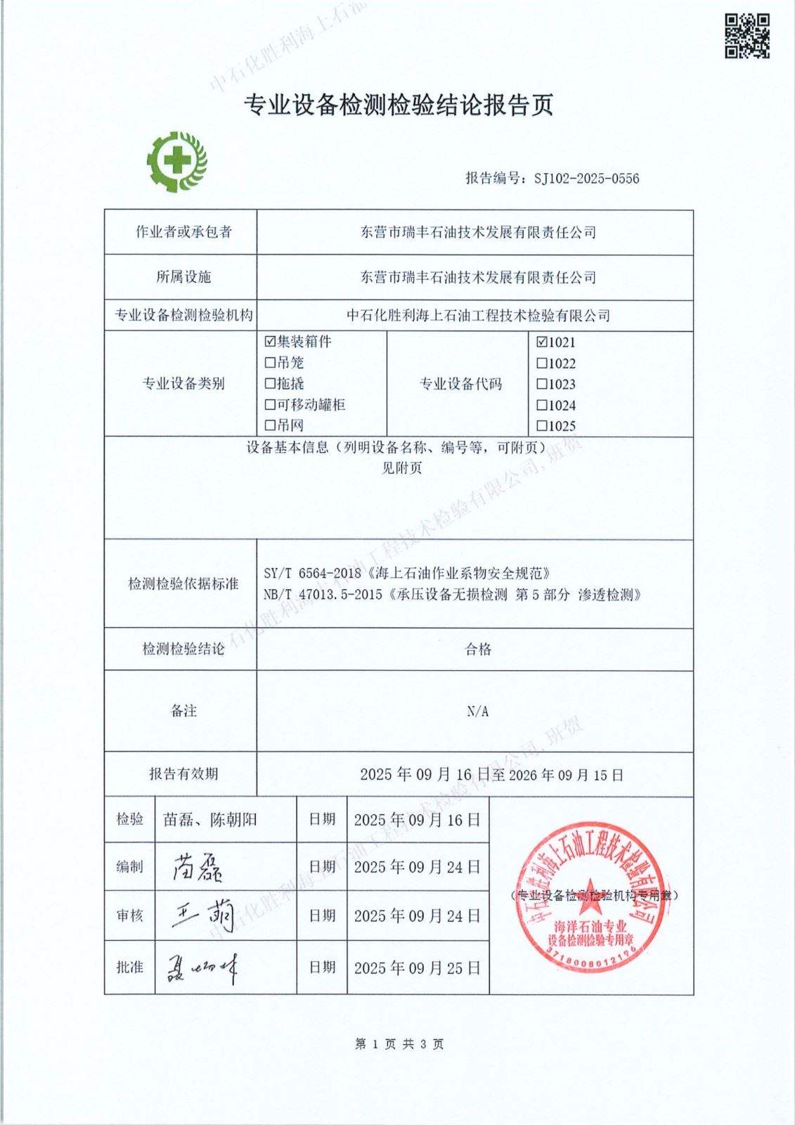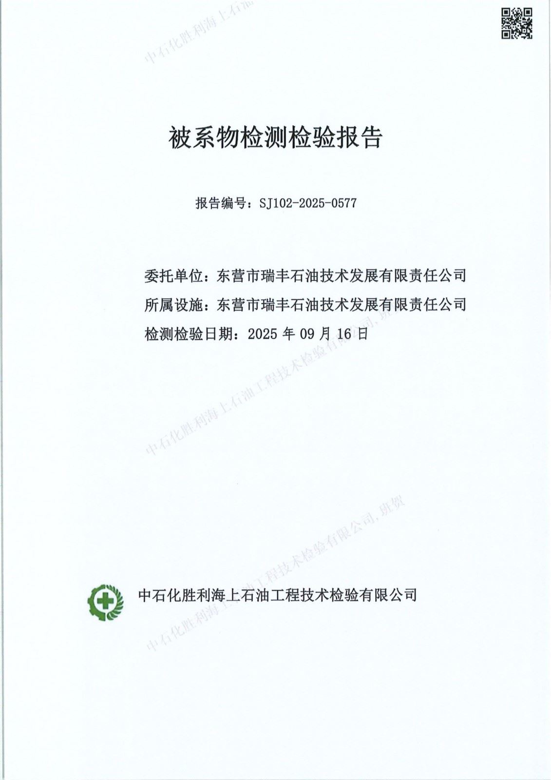 1、使用单位:东营市瑞丰石油技术发展有限责任公司