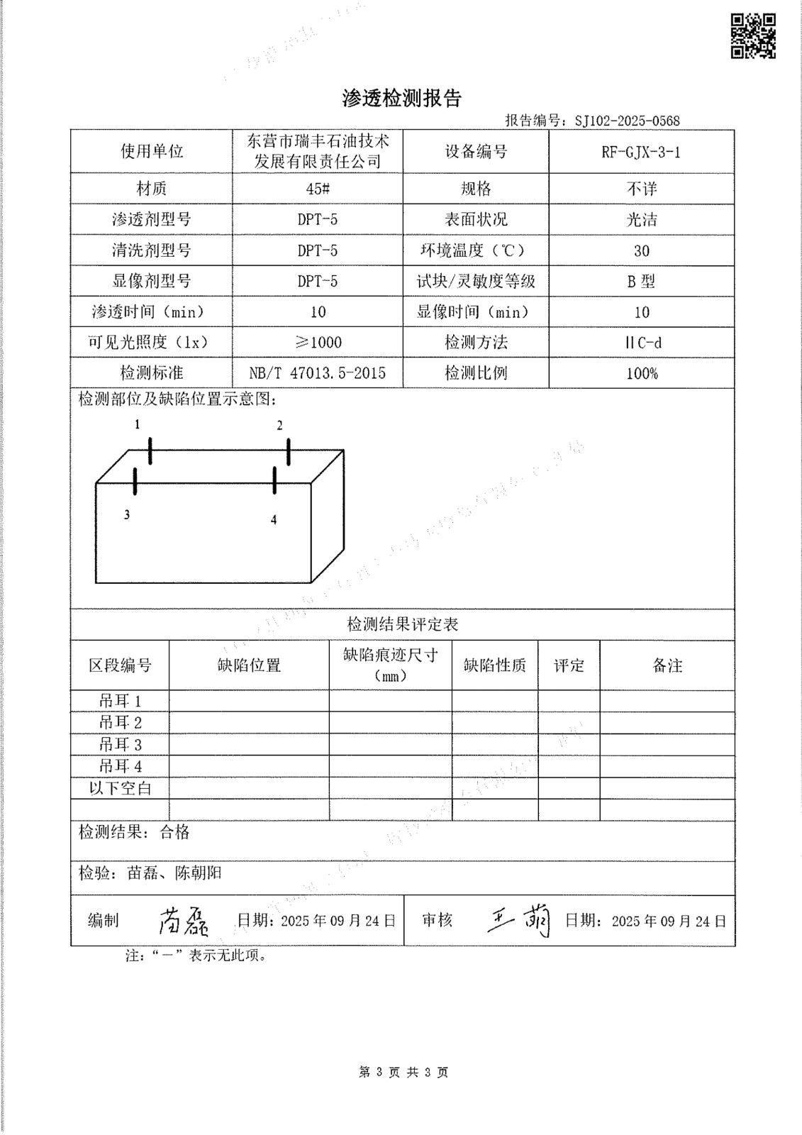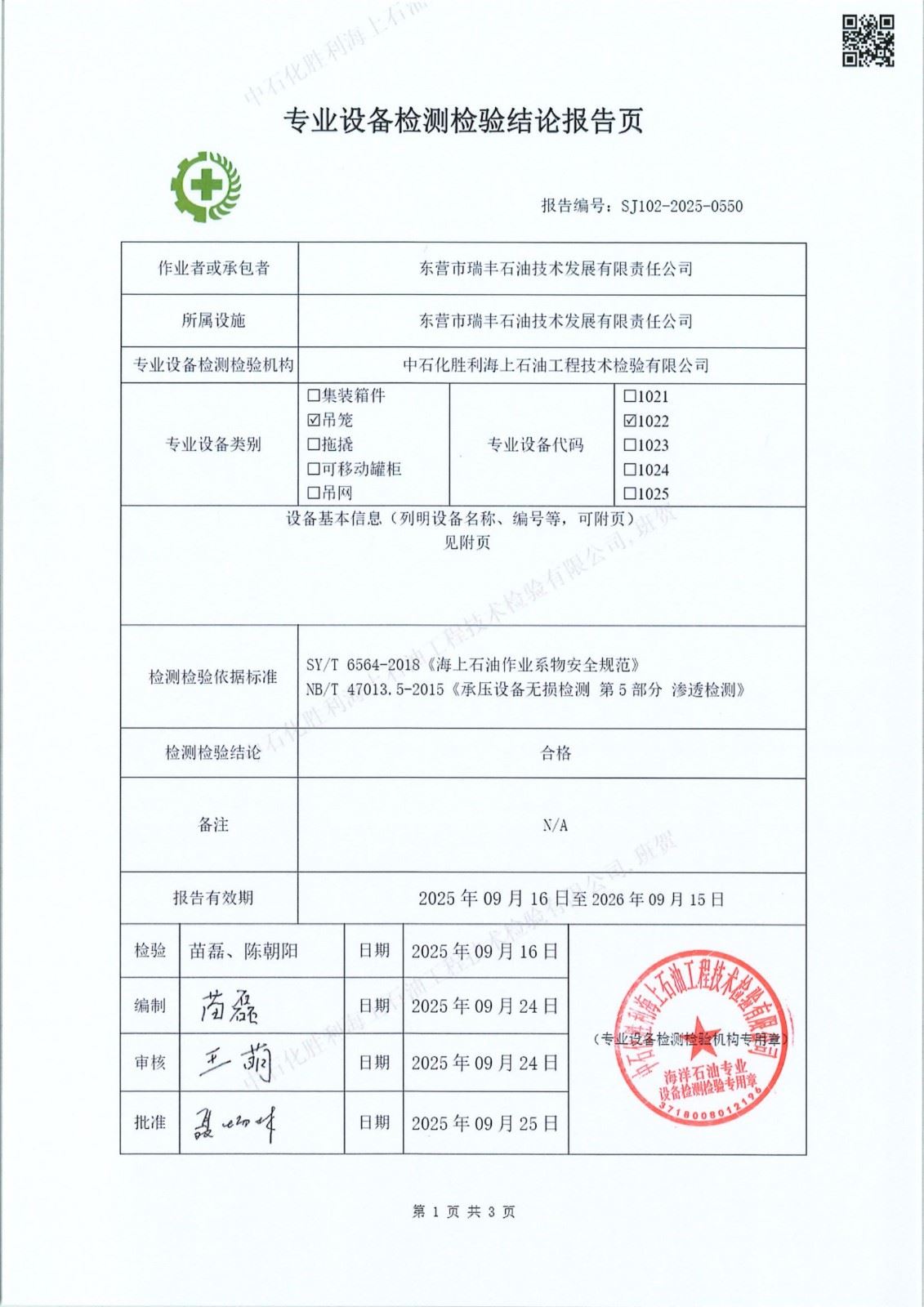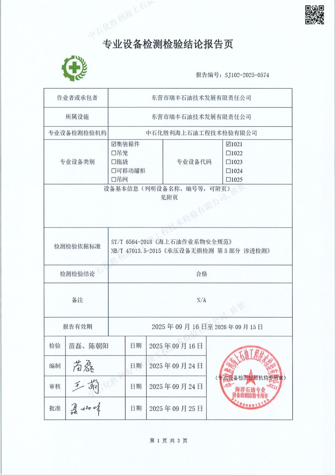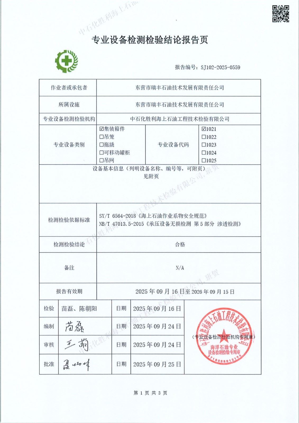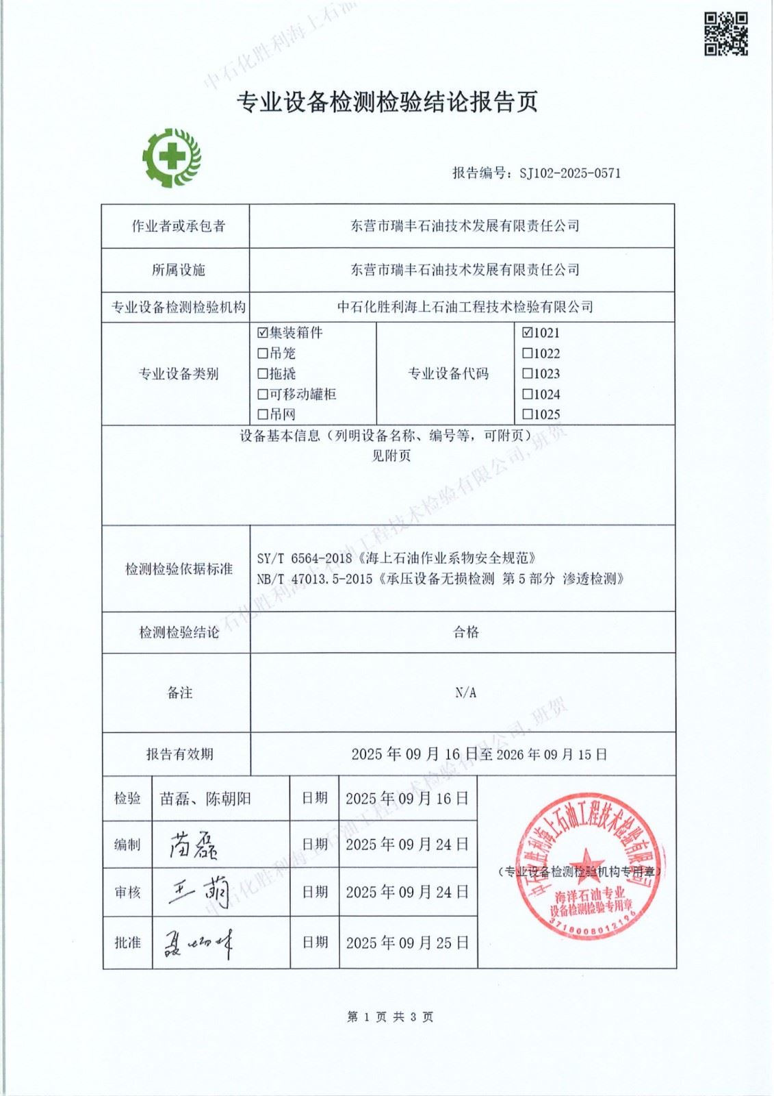 1、使用单位:东营市瑞丰石油技术发展有限责任公司