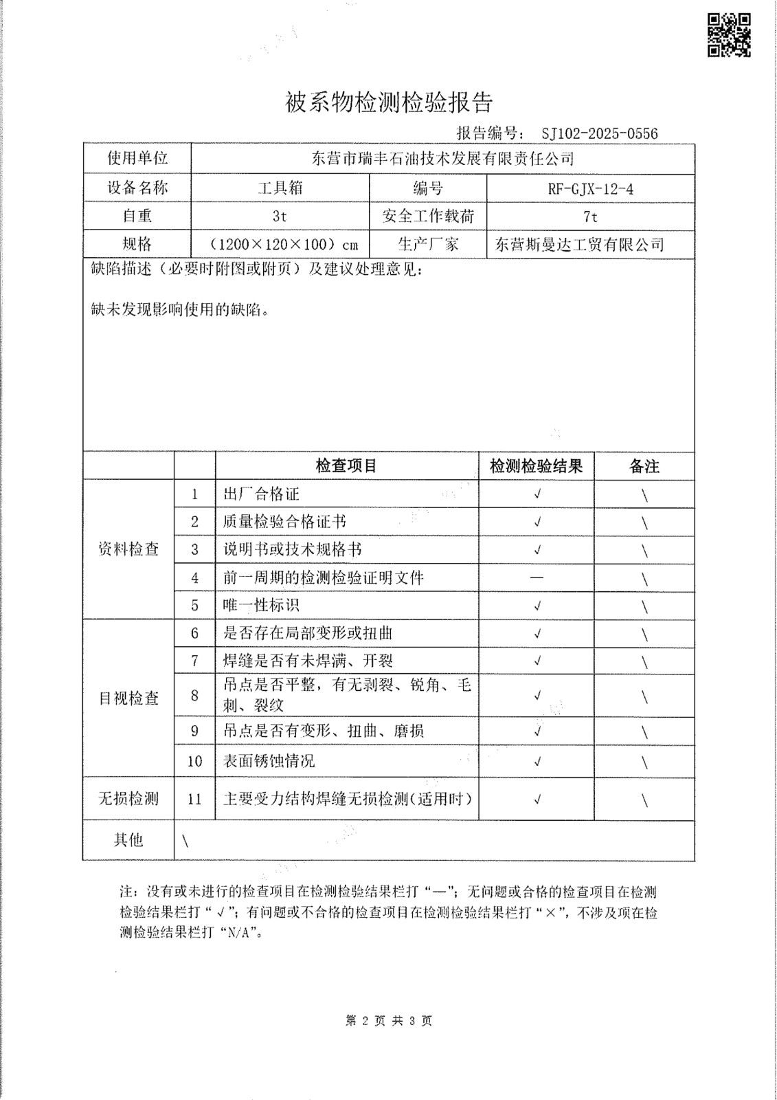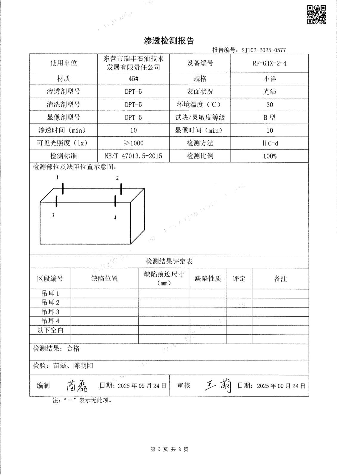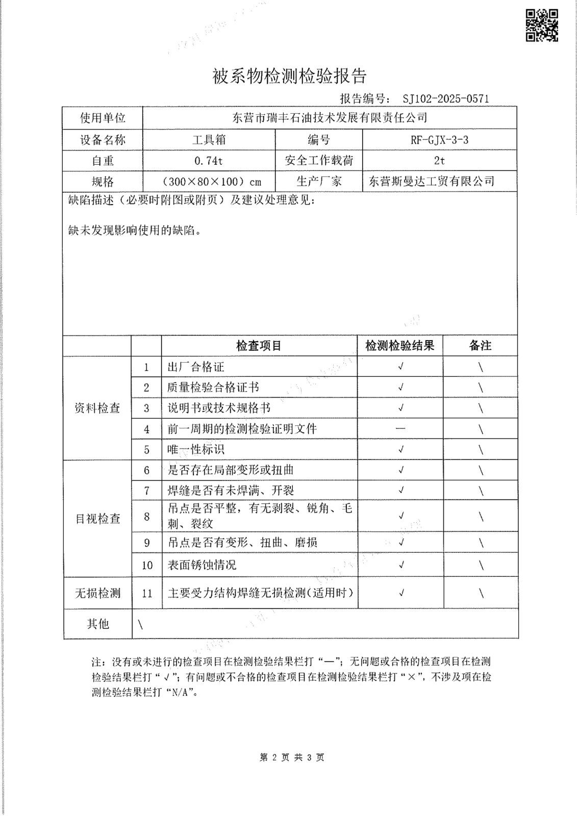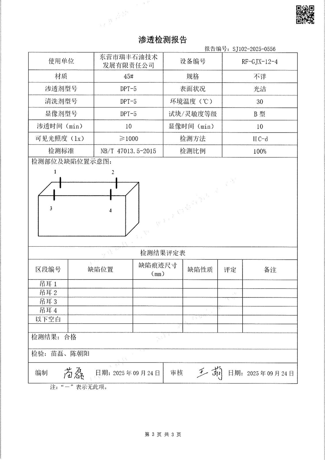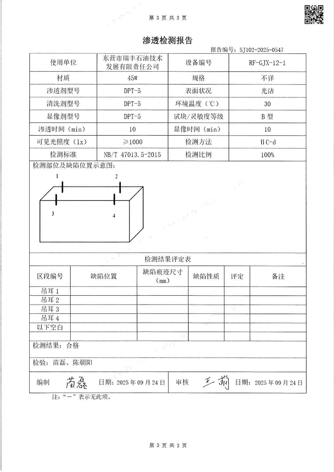 1、使用单位:东营市瑞丰石油技术发展有限责任公司