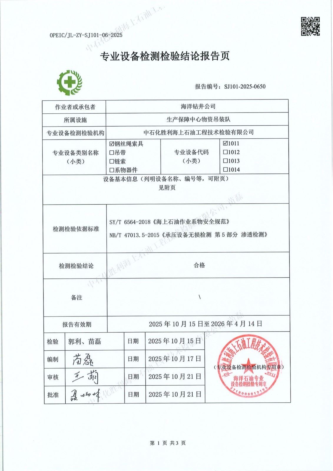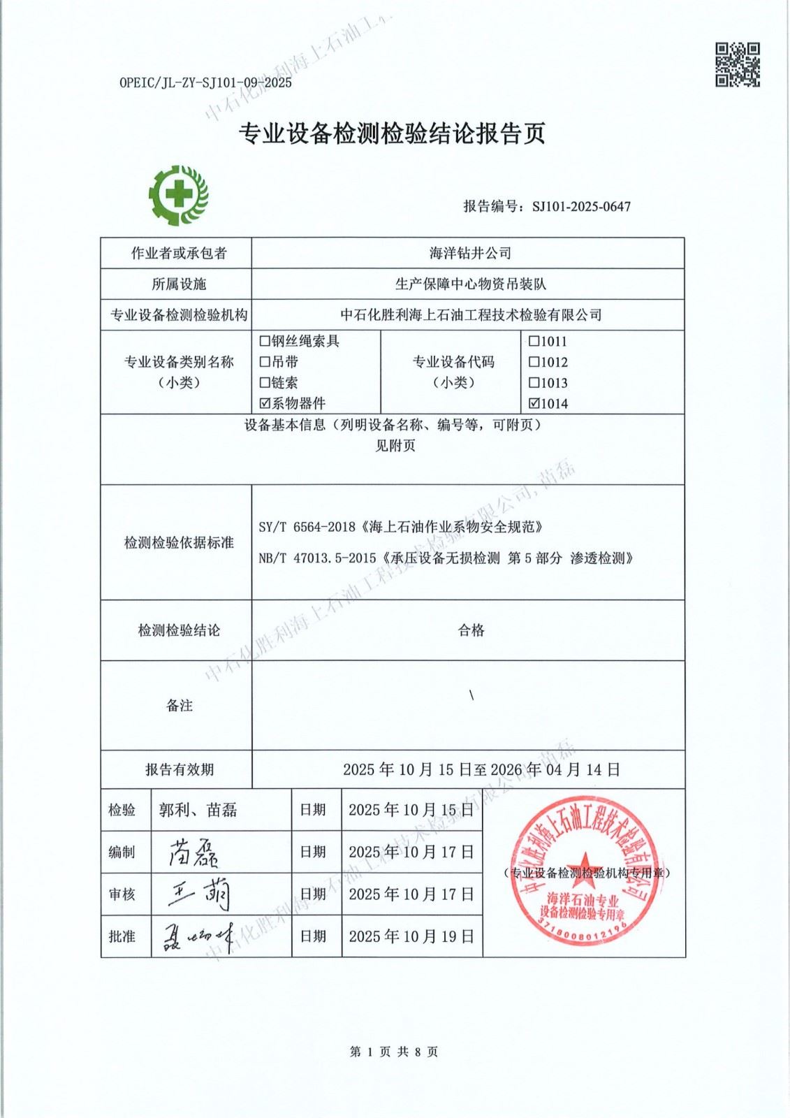 4、检验日期:2025年10月15日