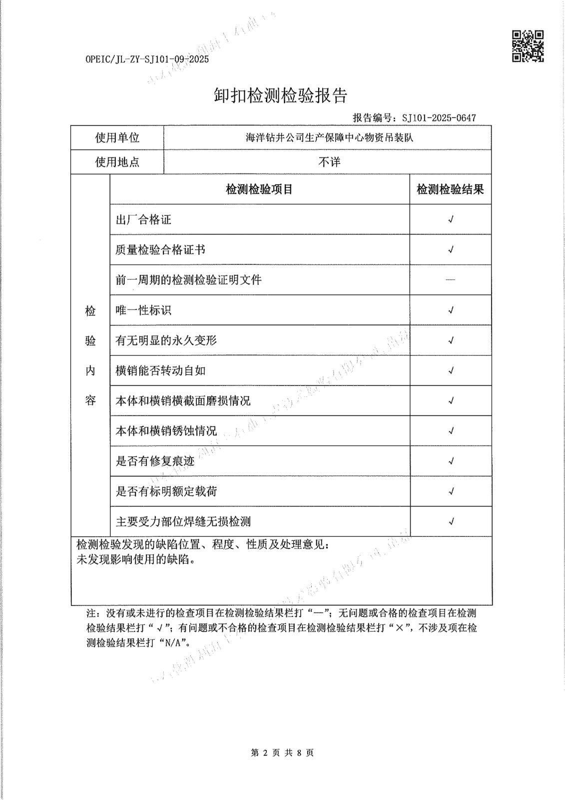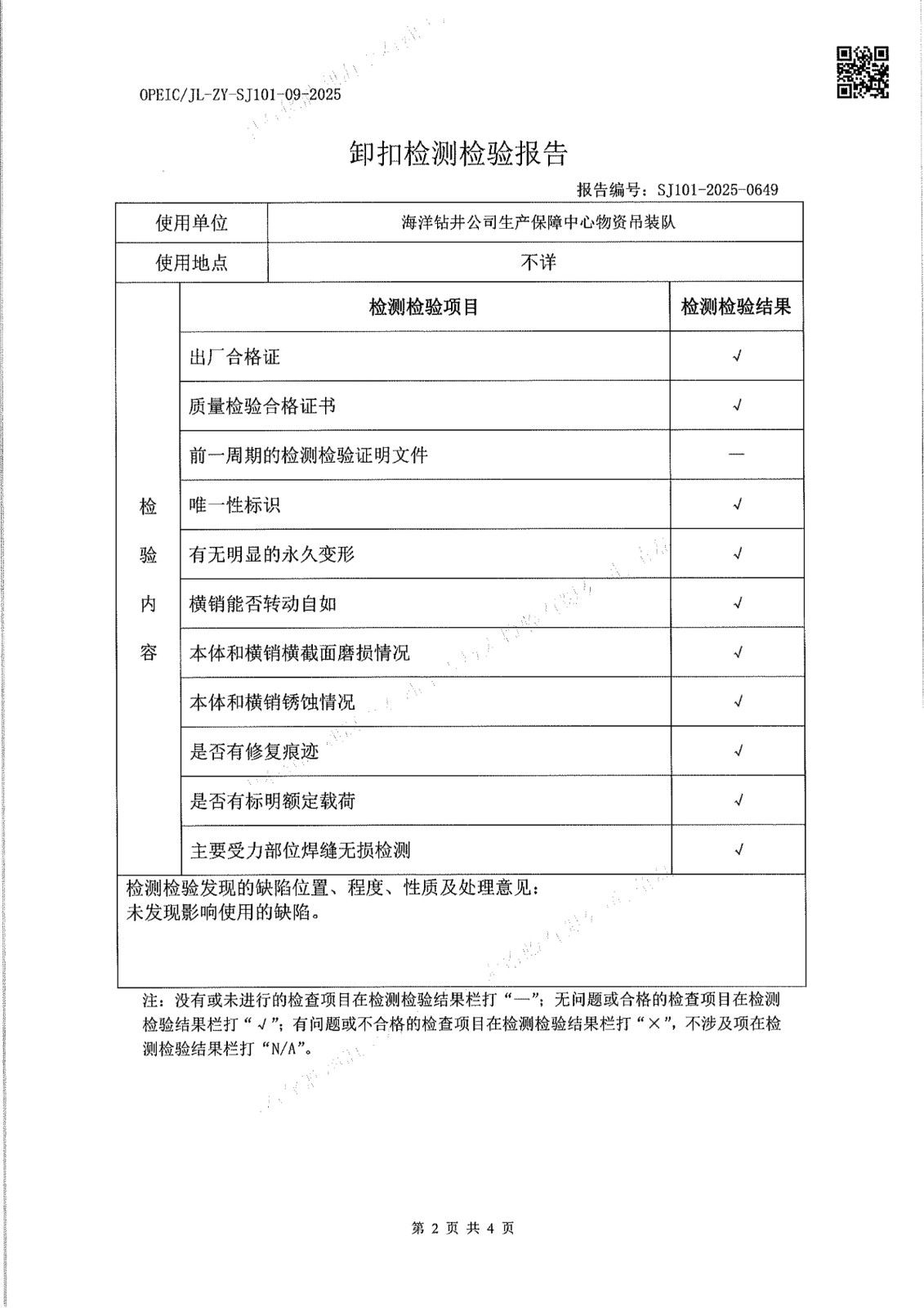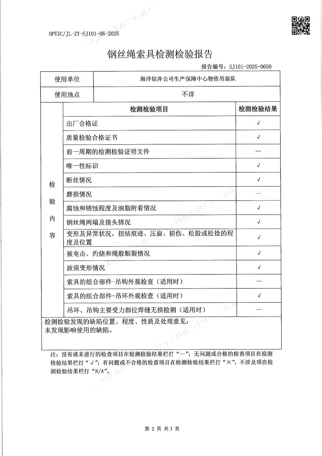 1、使用单位:海洋钻井公司生产保障中心物资吊装队