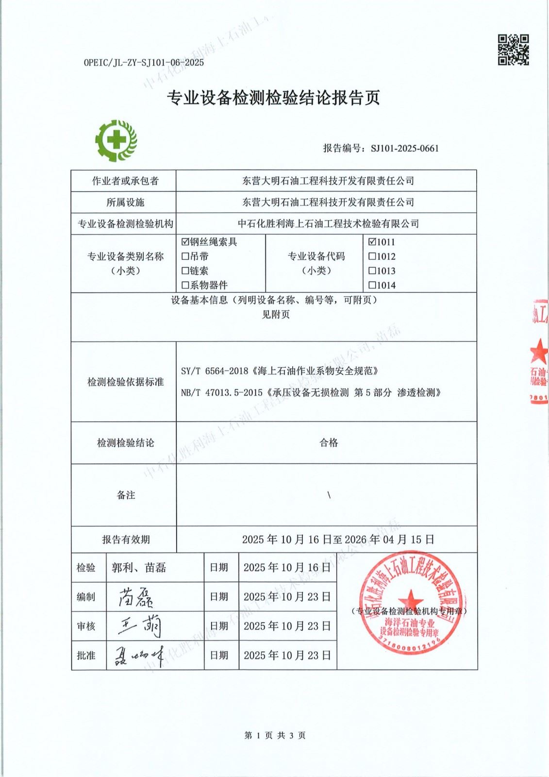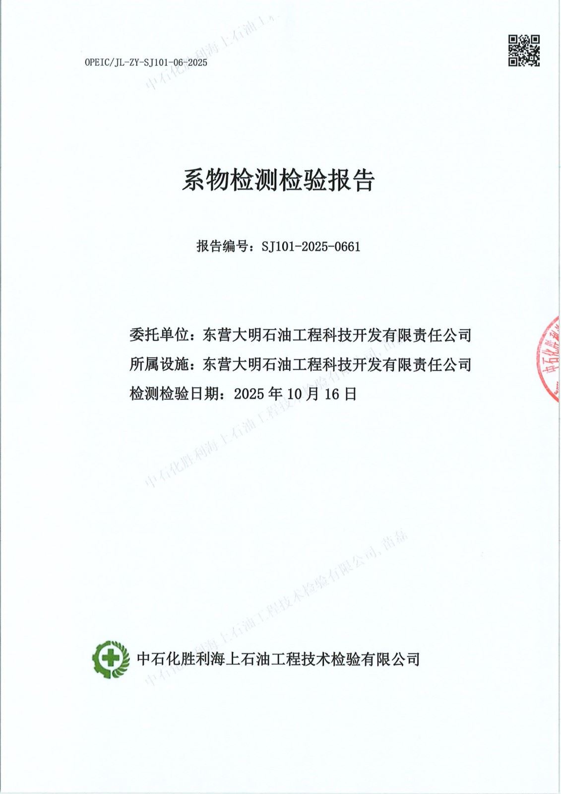 1、使用单位:东营大明石油工程科技开发有限责任公司