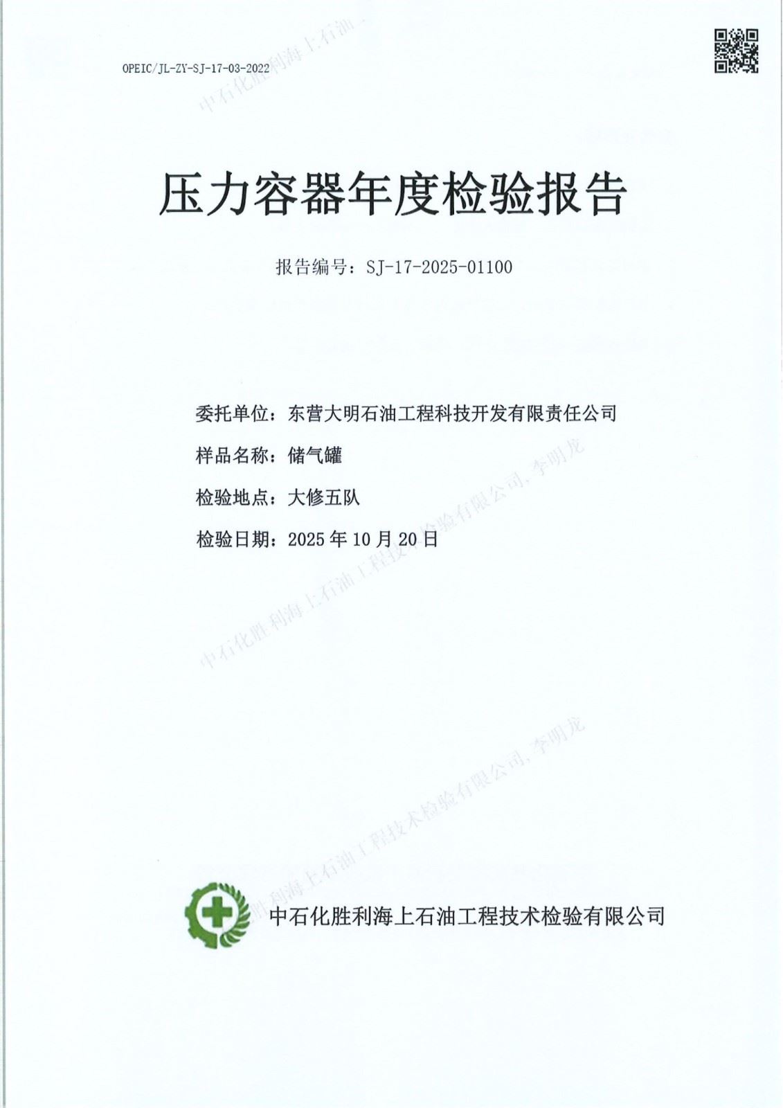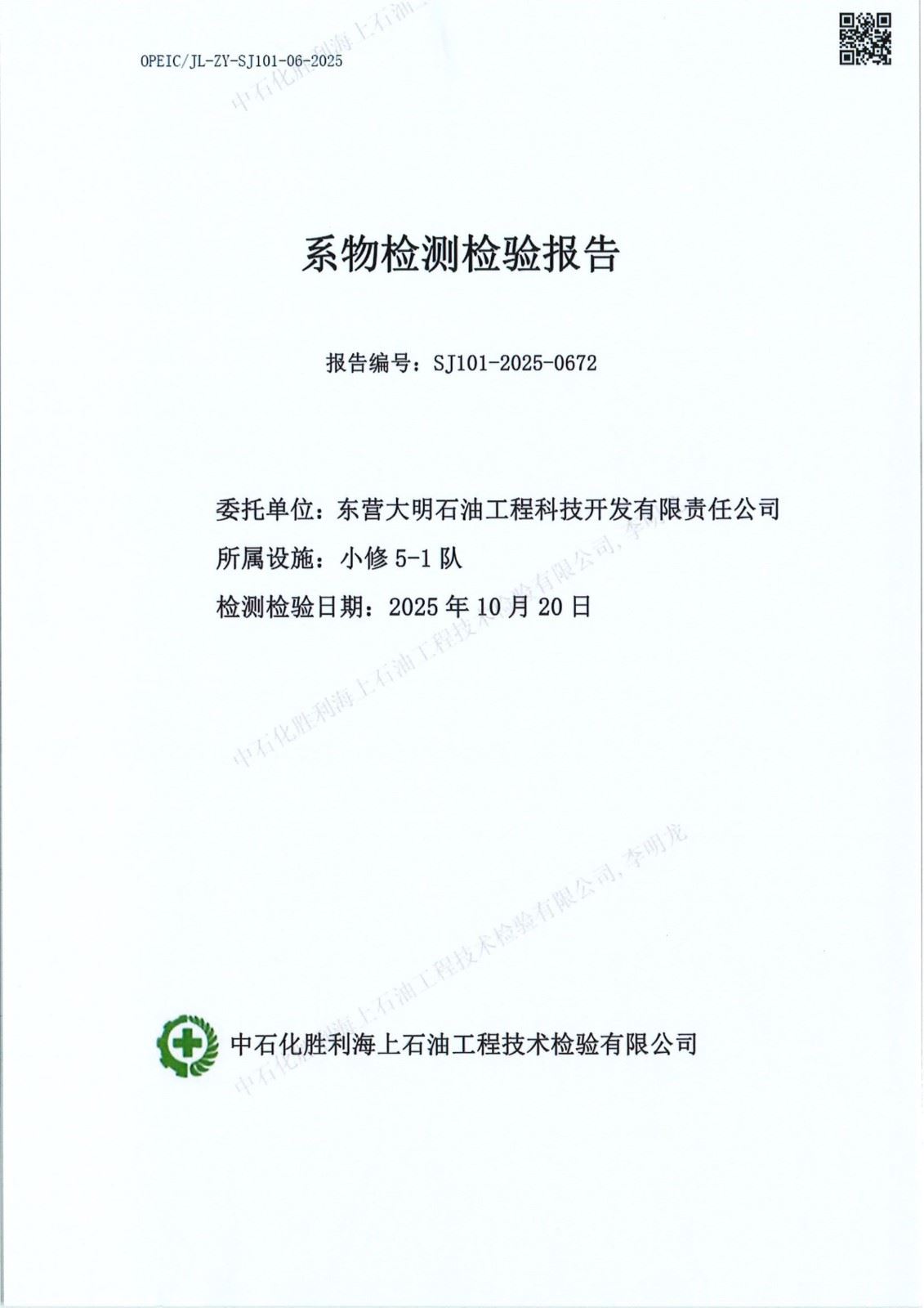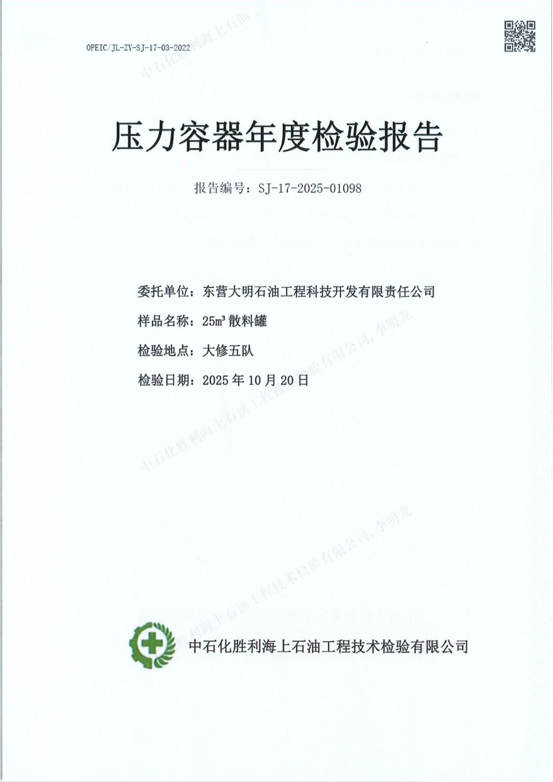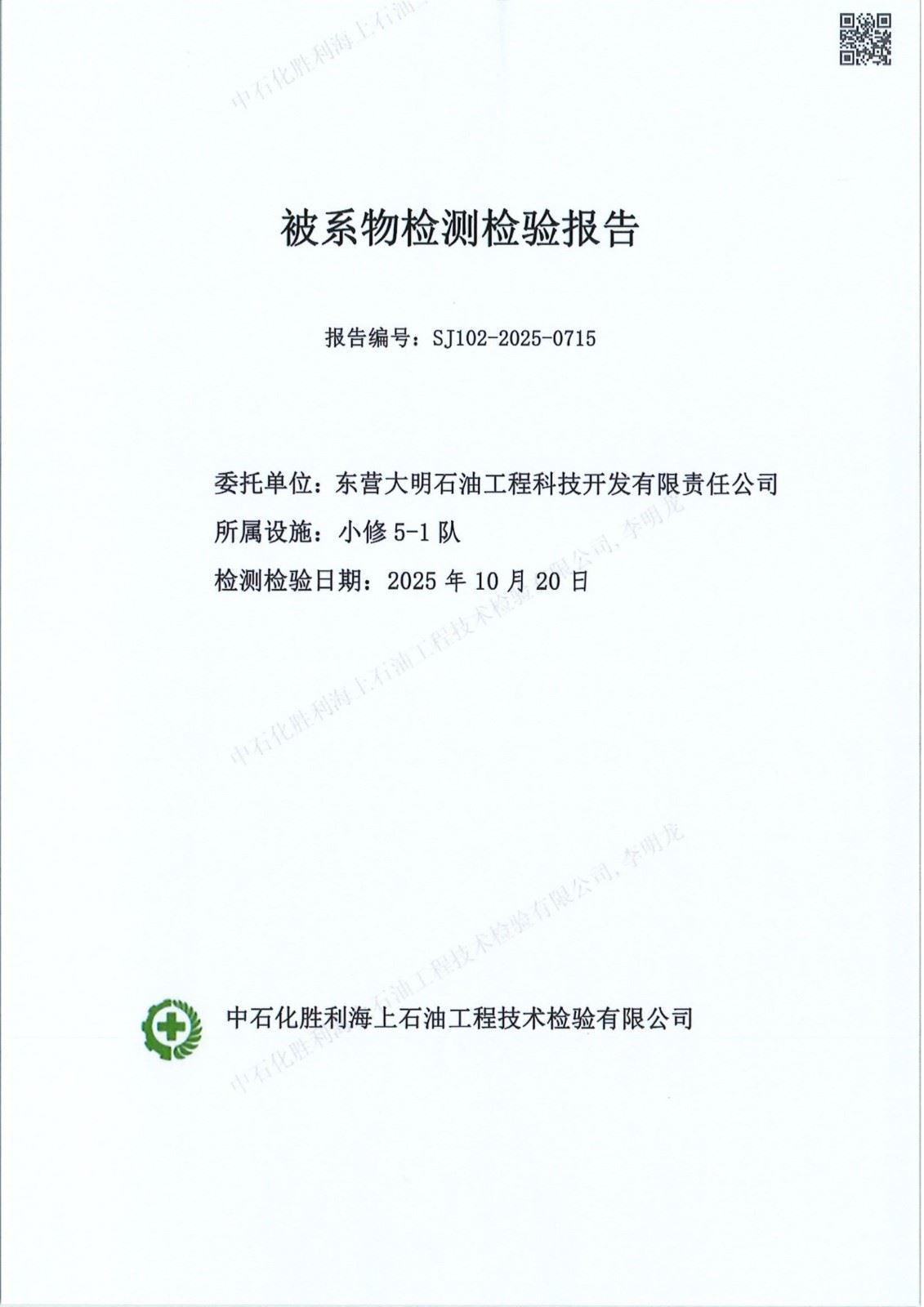 1、使用单位:东营大明石油工程科技开发有限责任公司