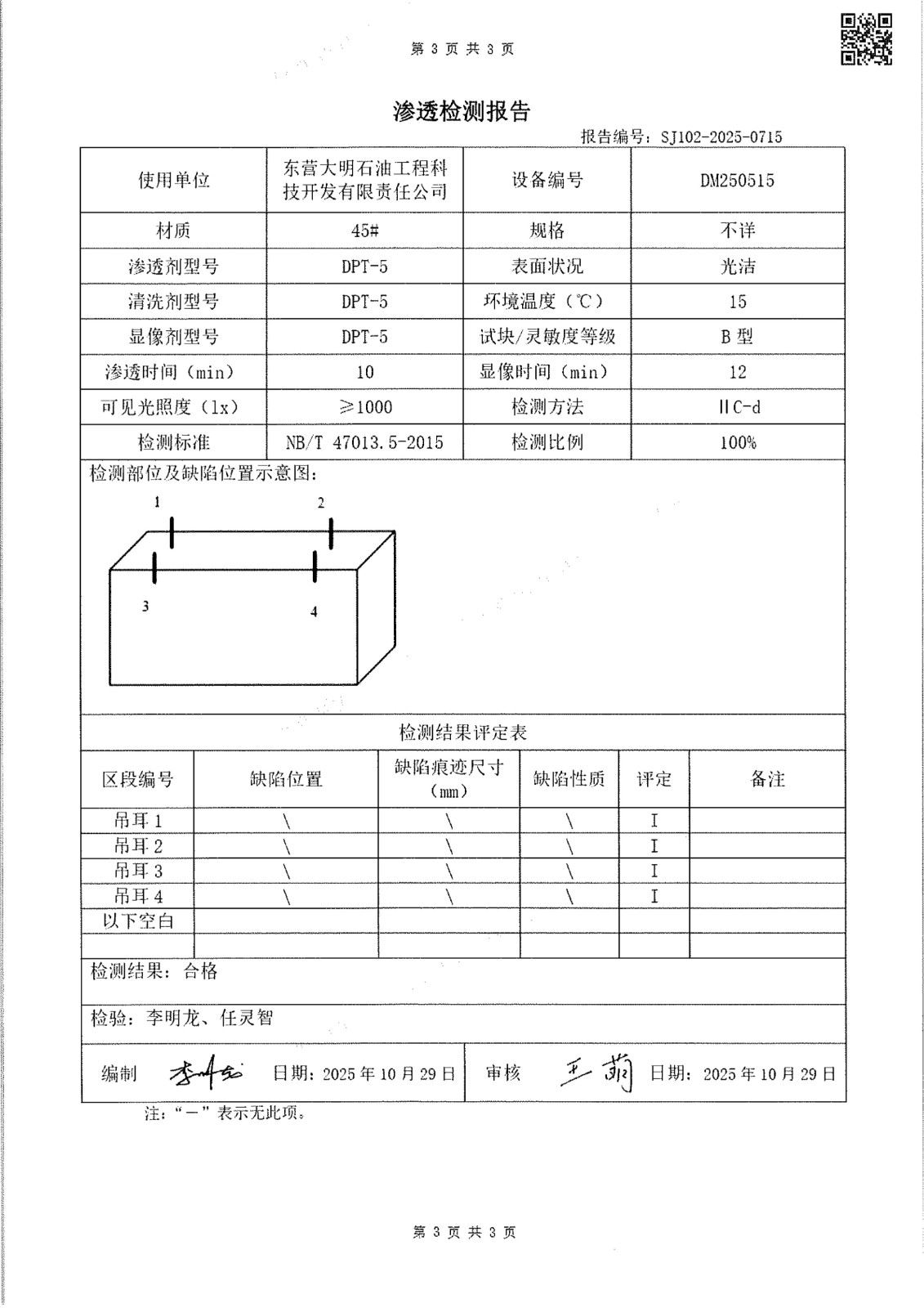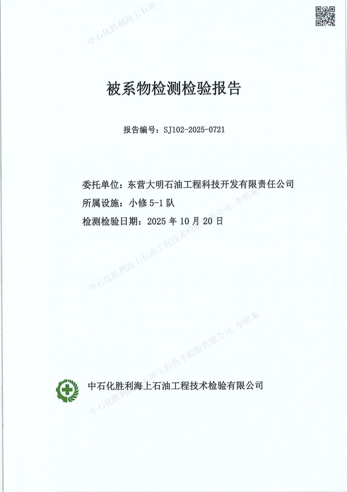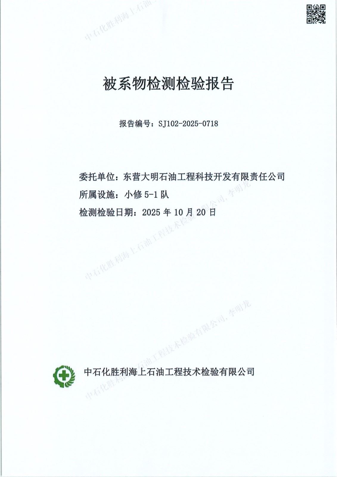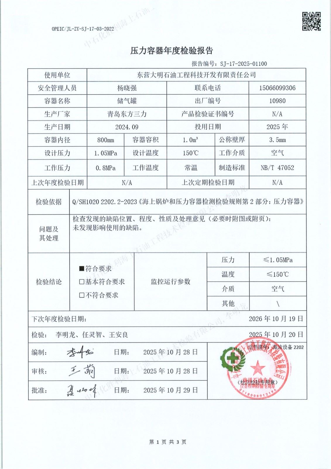 1、使用单位:东营大明石油工程科技开发有限责任公司