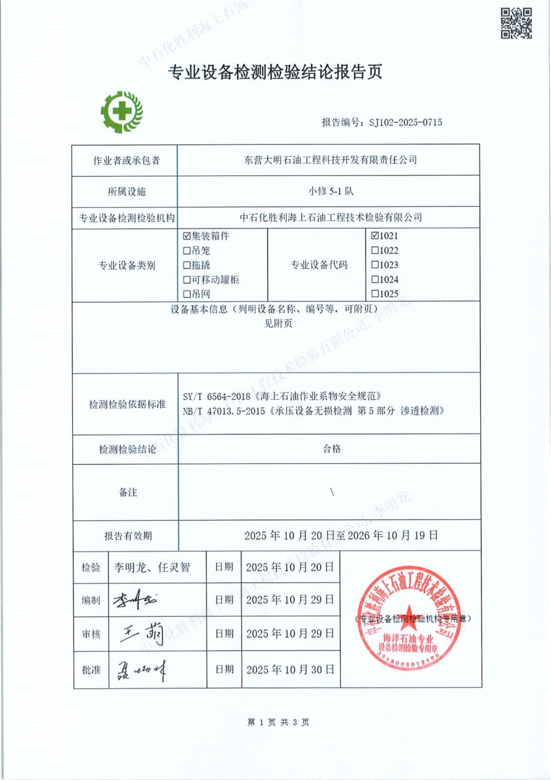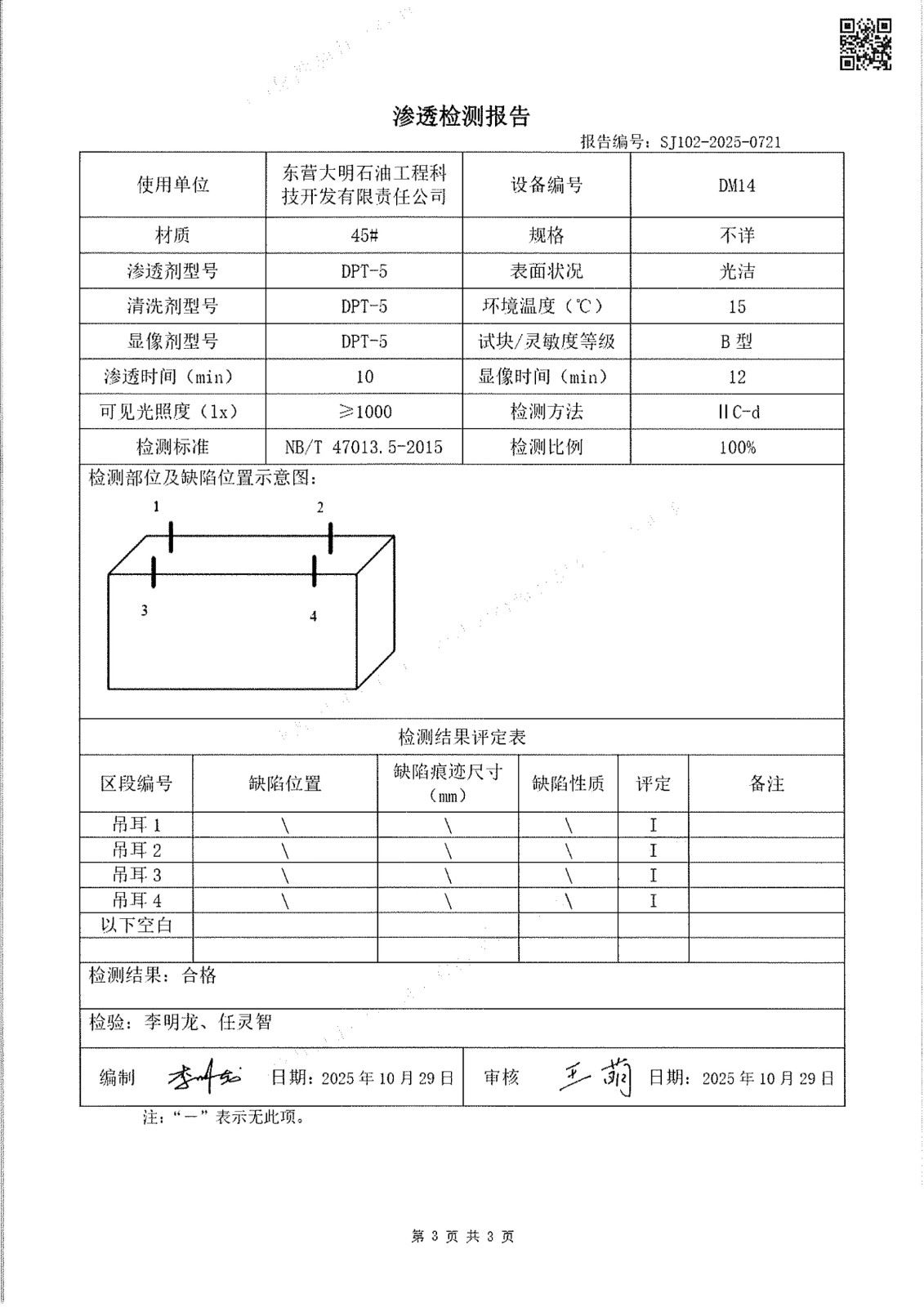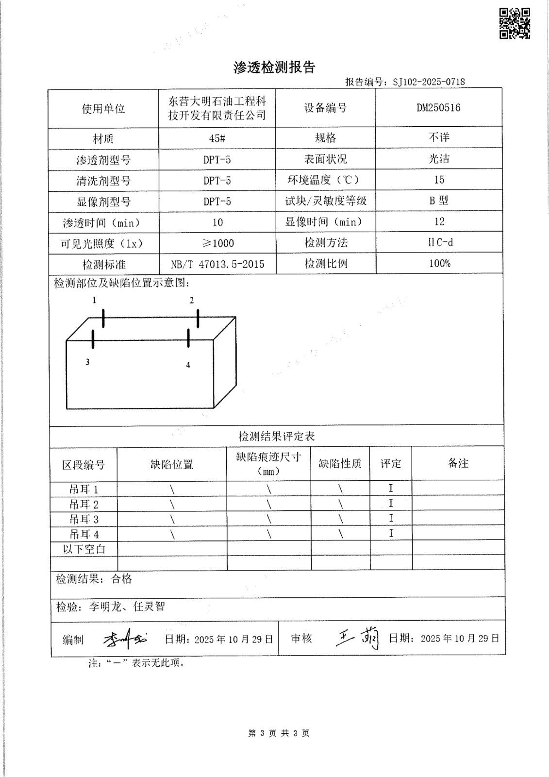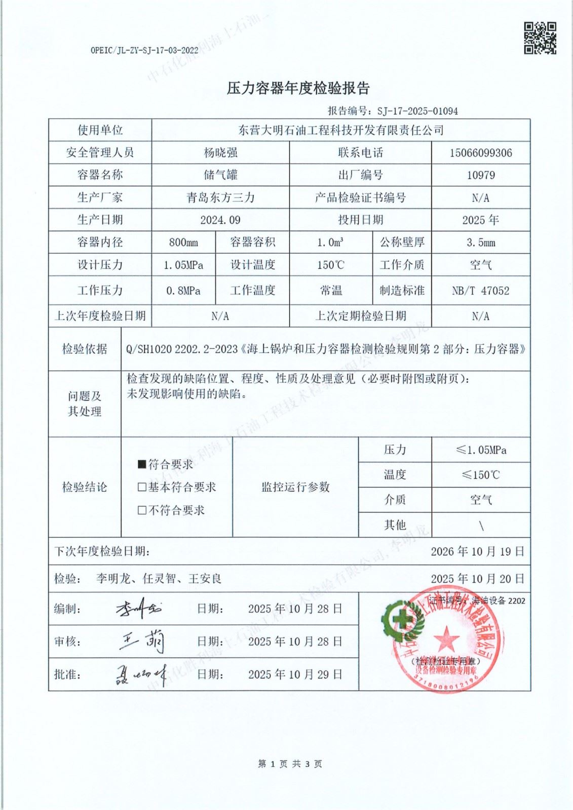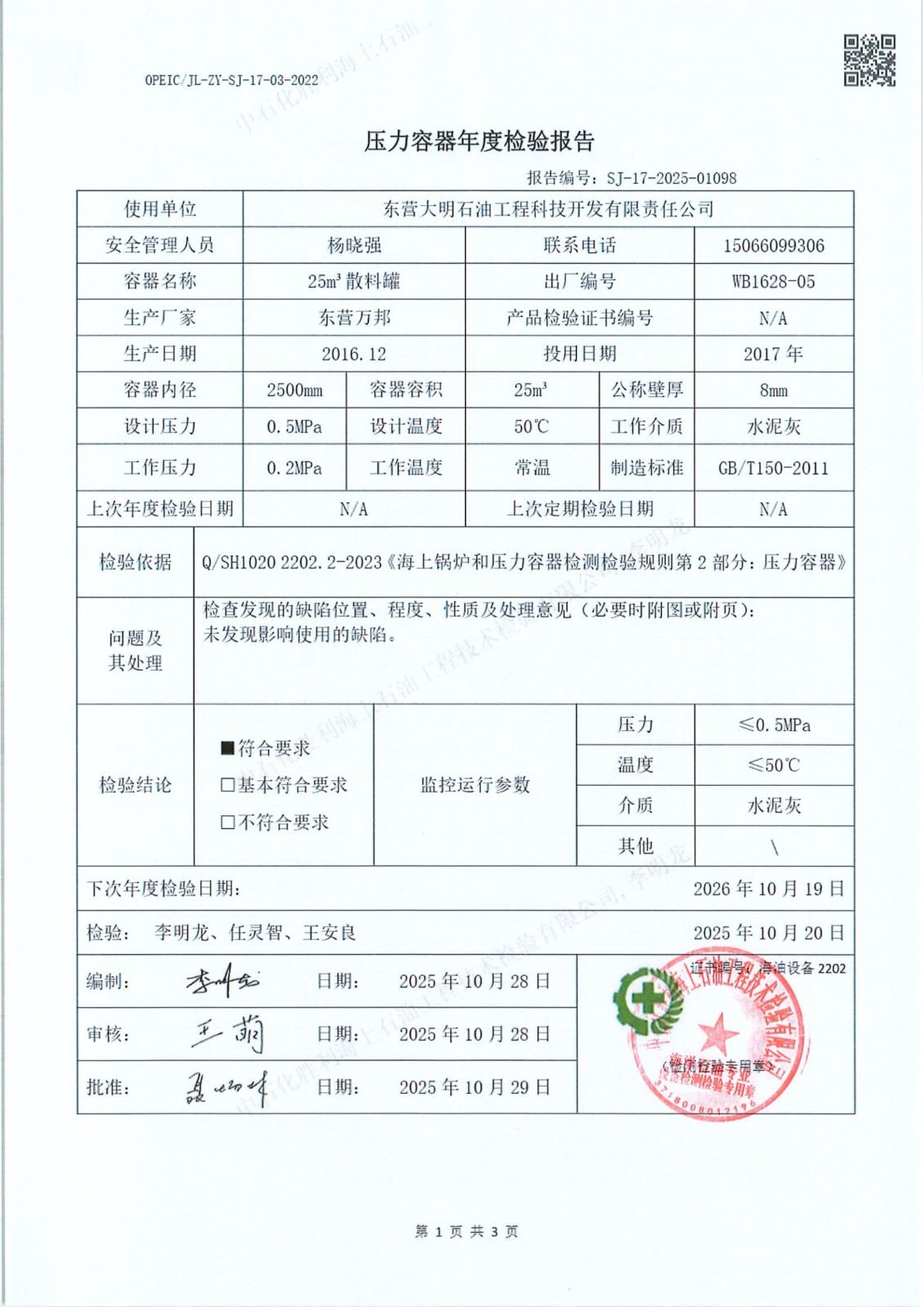 1、使用单位:东营大明石油工程科技开发有限责任公司