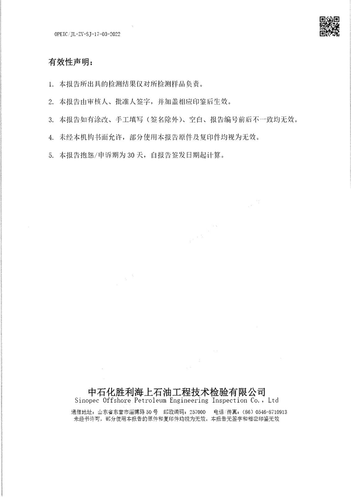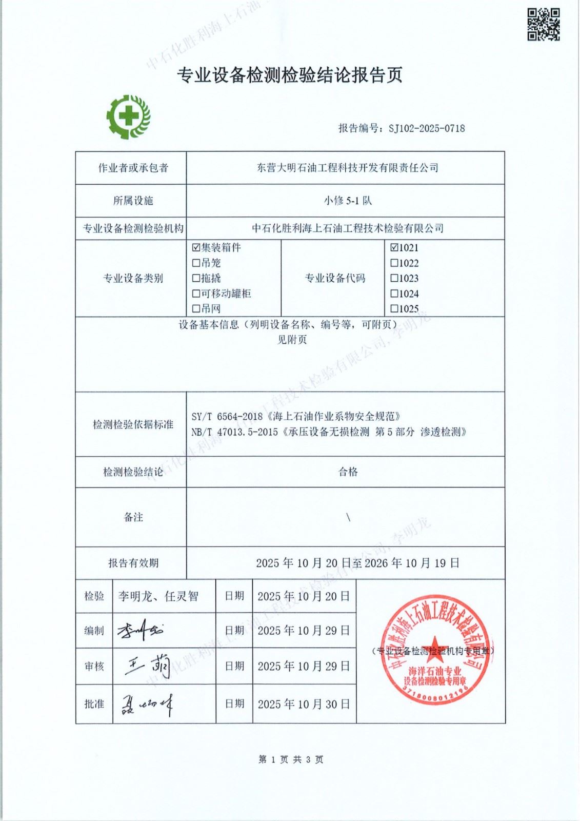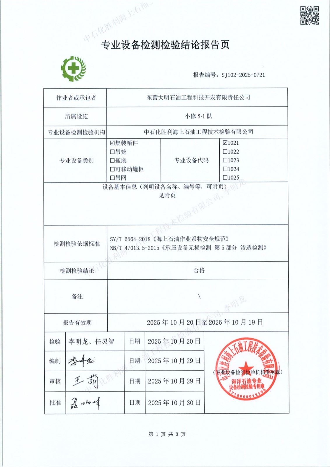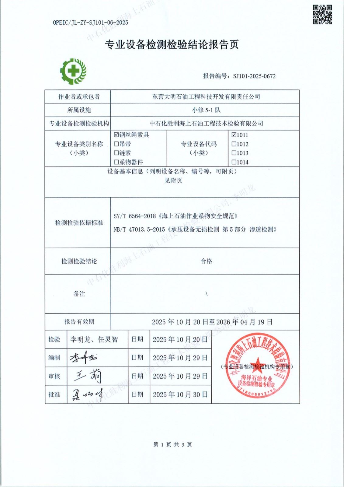 1、使用单位:东营大明石油工程科技开发有限责任公司