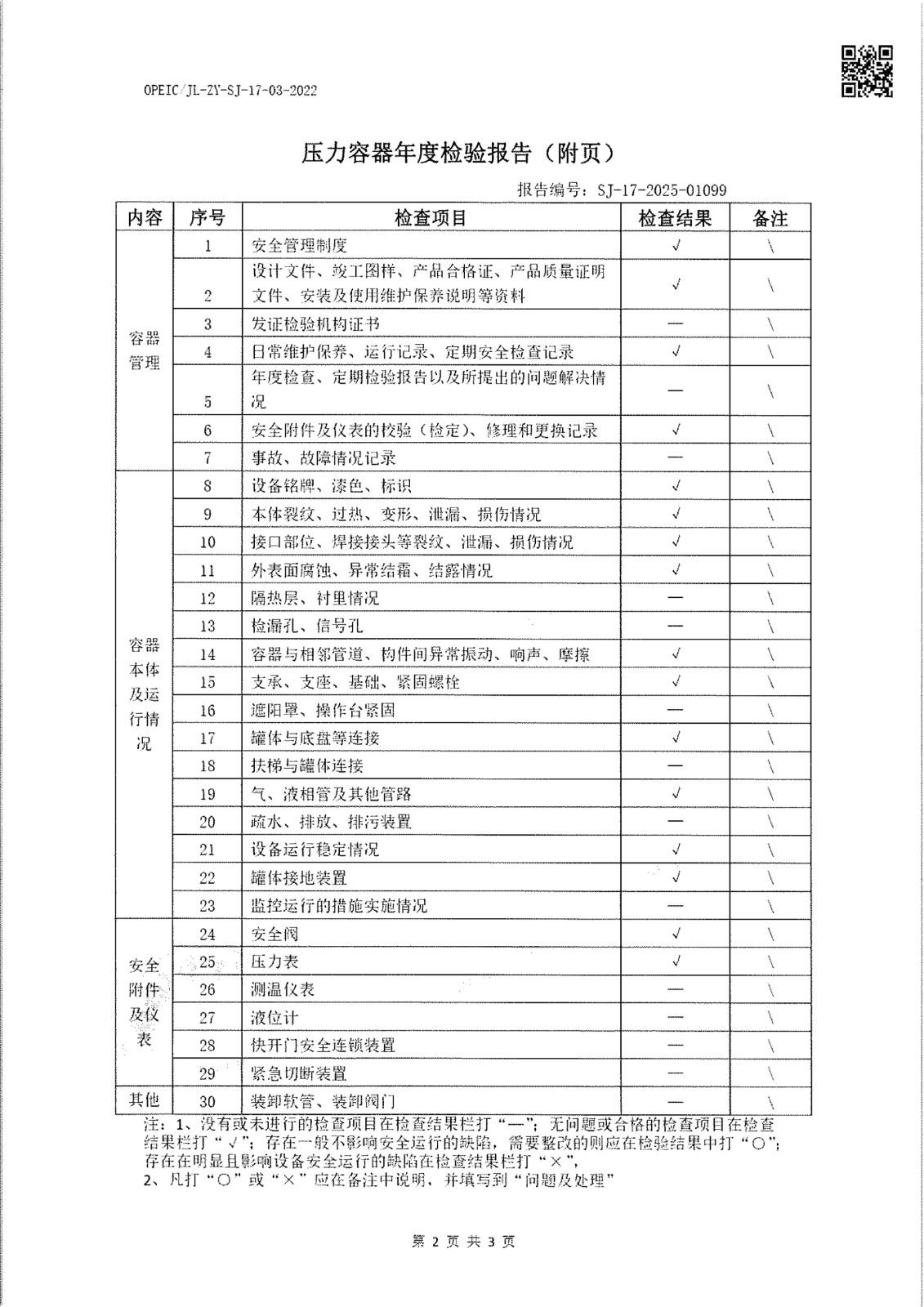 2、检验内容:被系物检验,压力容器年度检验,系物检验
