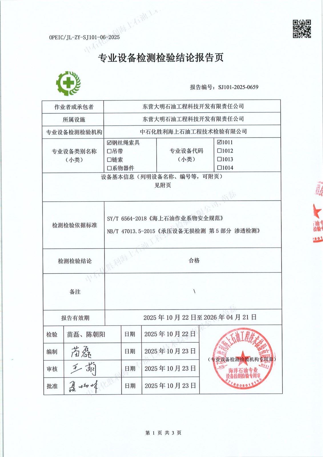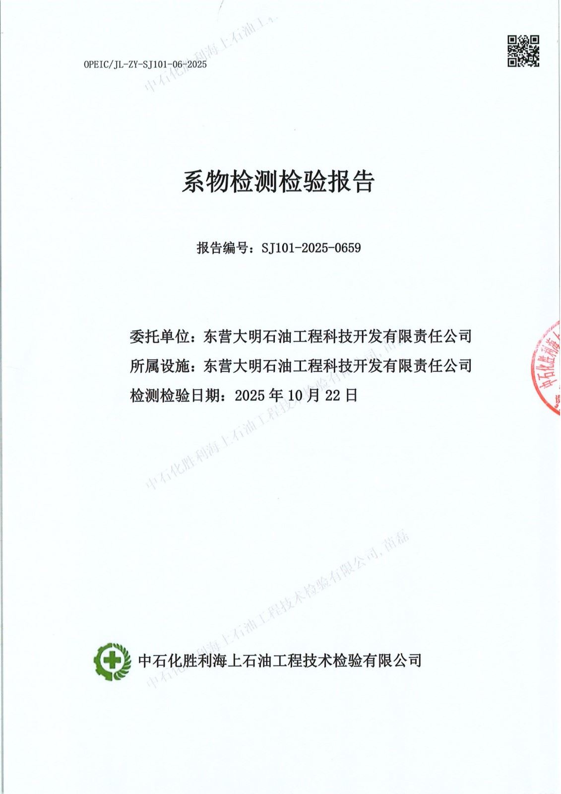 1、使用单位:东营大明石油工程科技开发有限责任公司