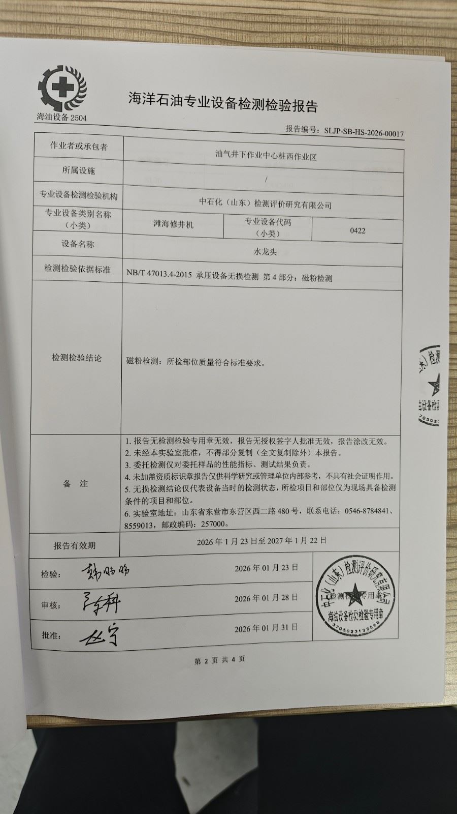 受检(委托)单位 | 油气井下作业中心桩西作业区 |