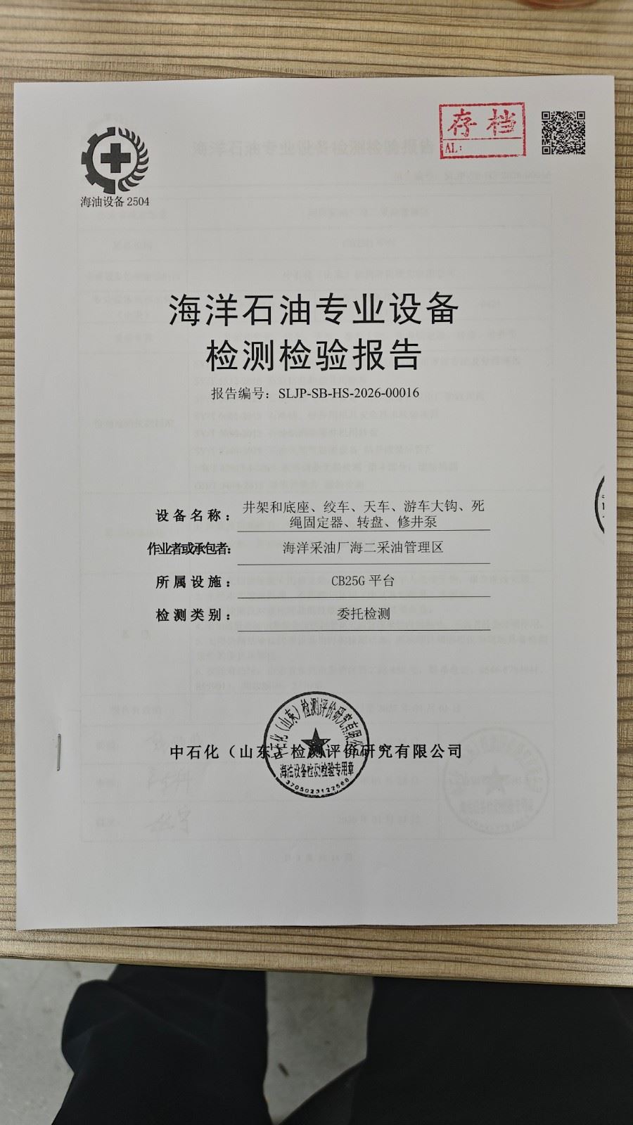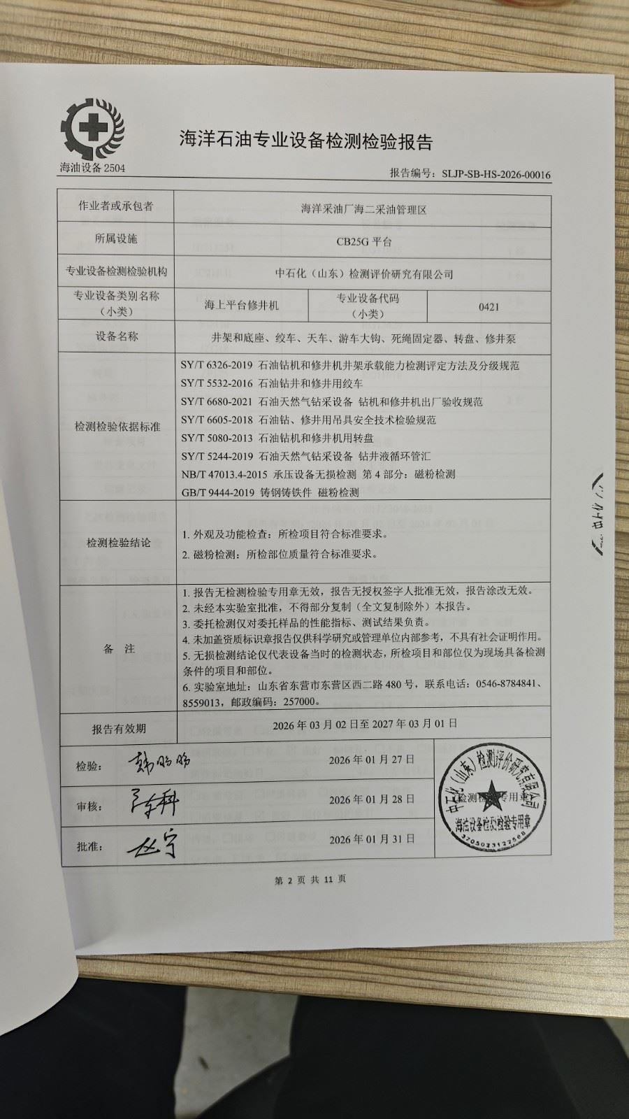 报告名称 | 海洋采油厂CB25G平台修井机年检 | |