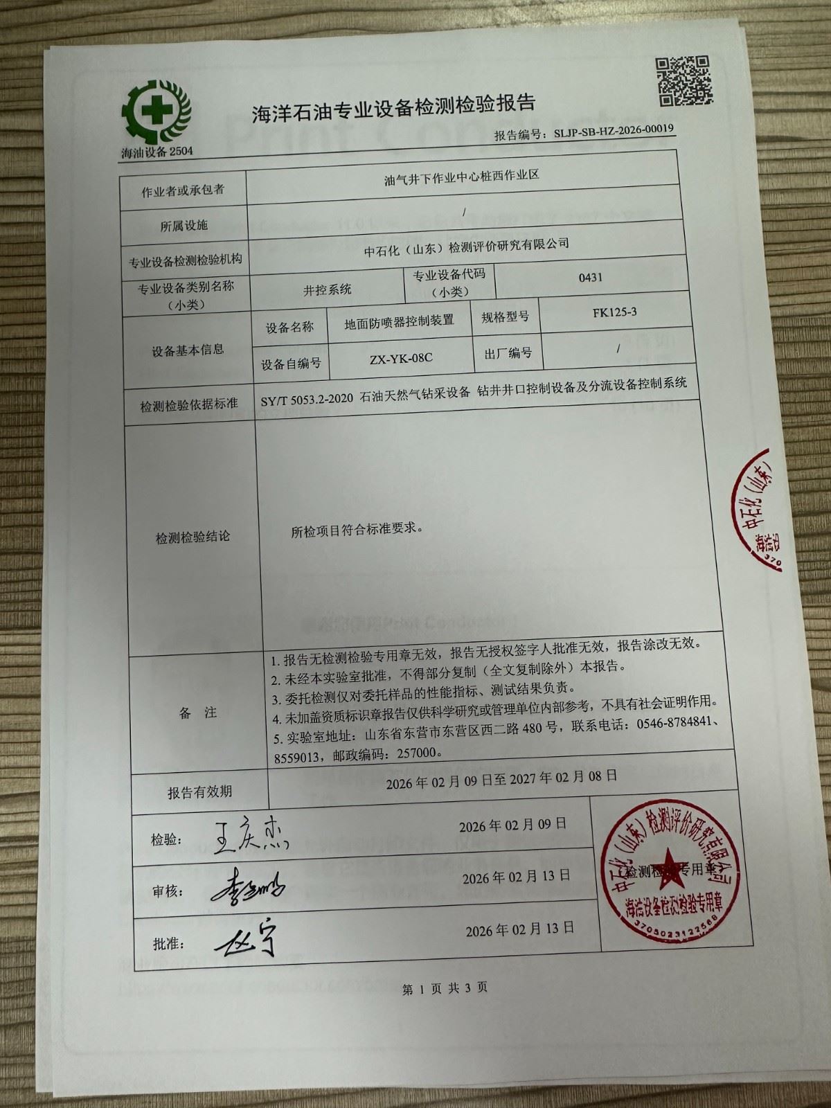 检测检验单位 | 中石化(山东)检测评价研究有限公司 | |