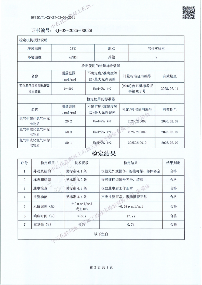 2、检验内容:硫化氢检测仪检定