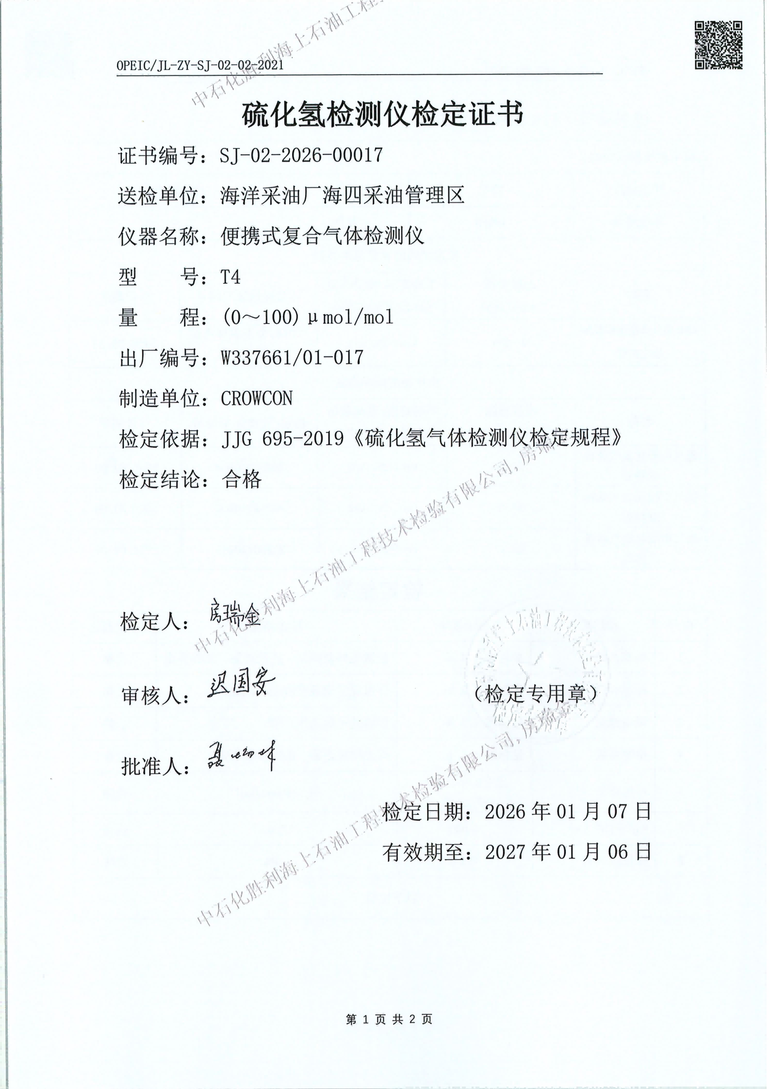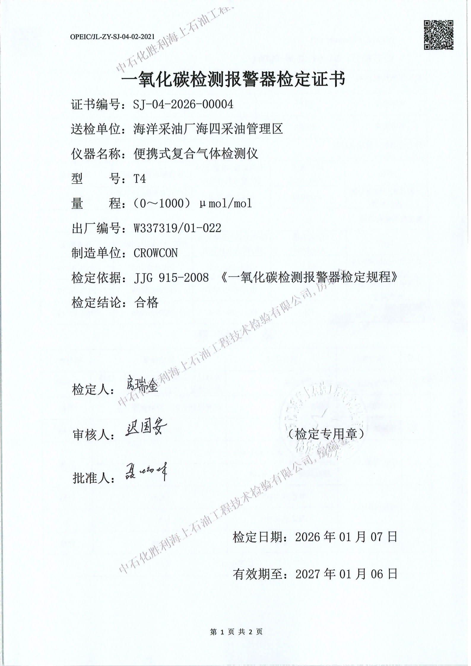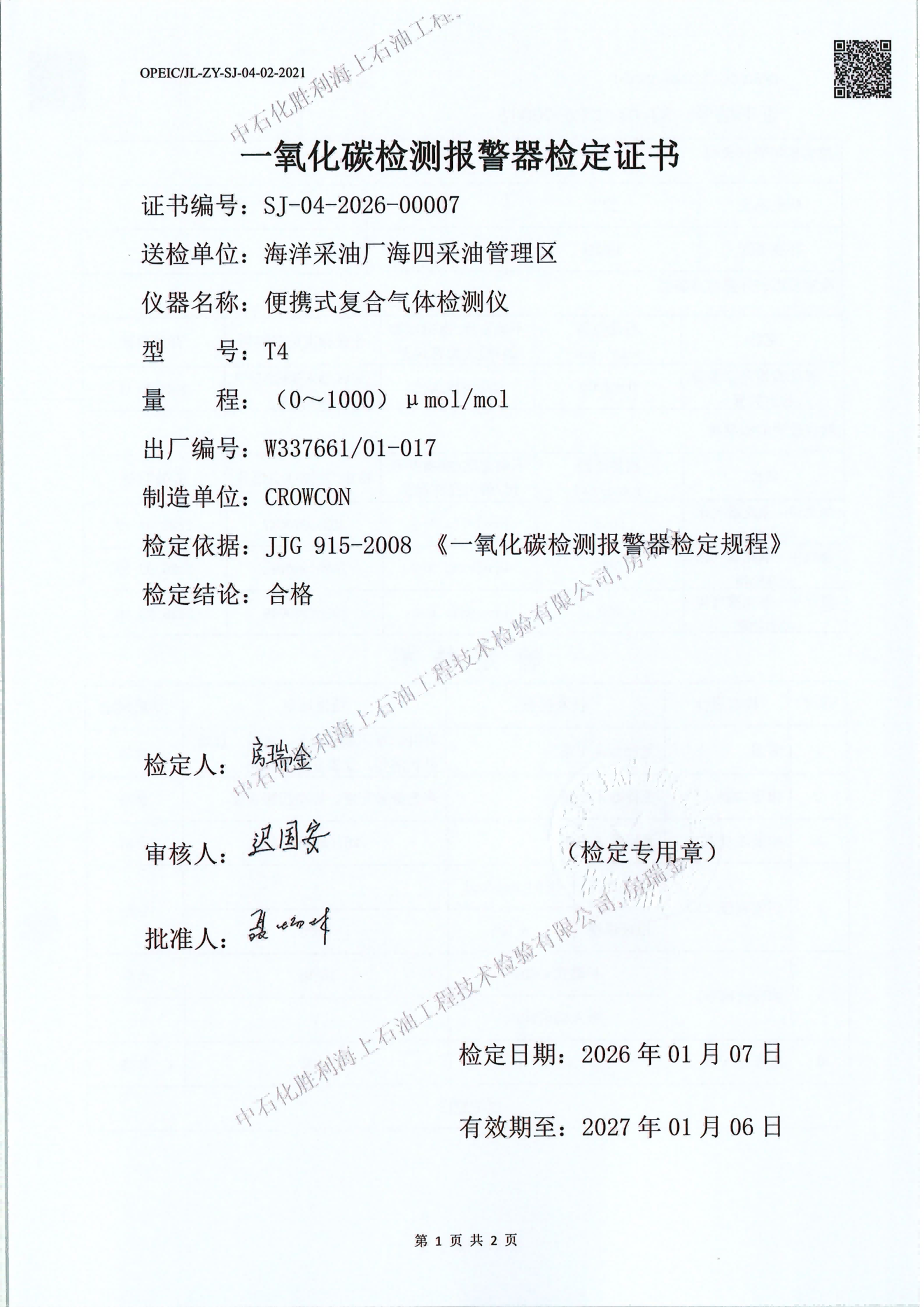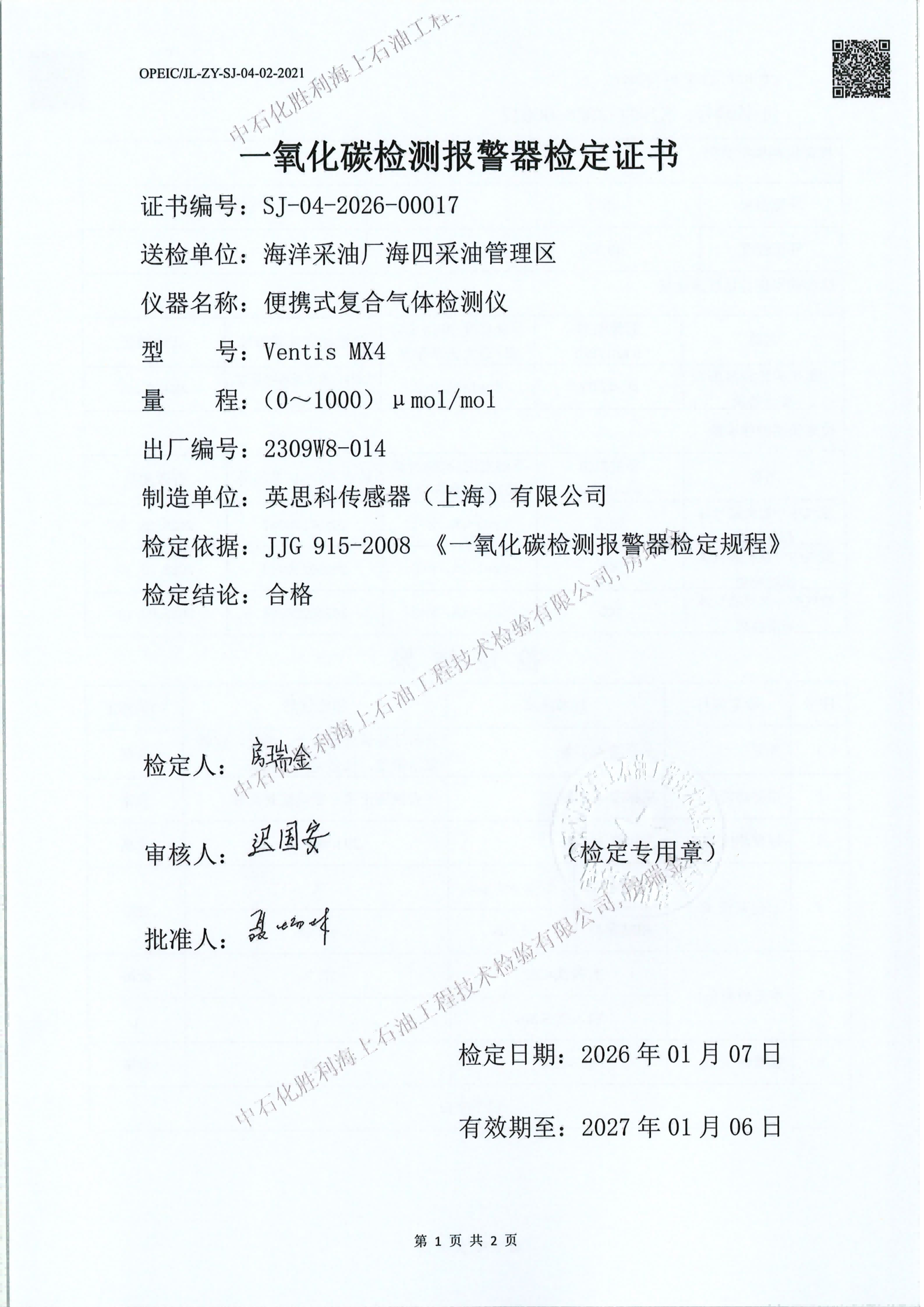 4、检验日期:2026年01月07日