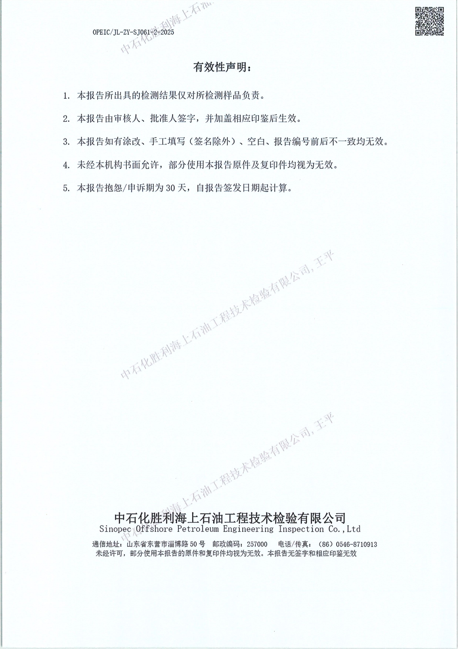 石化胜利海上石油工技术检验有限公司
