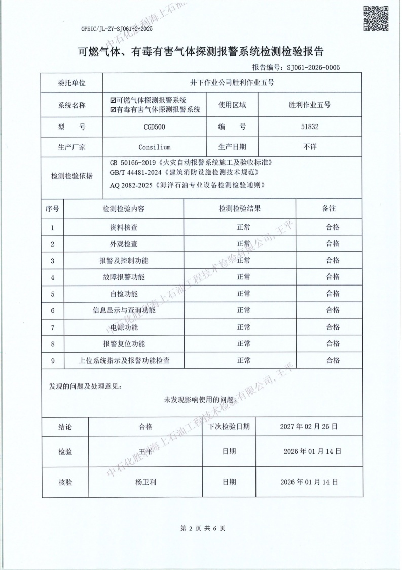 4、检验日期:2026年01月14日