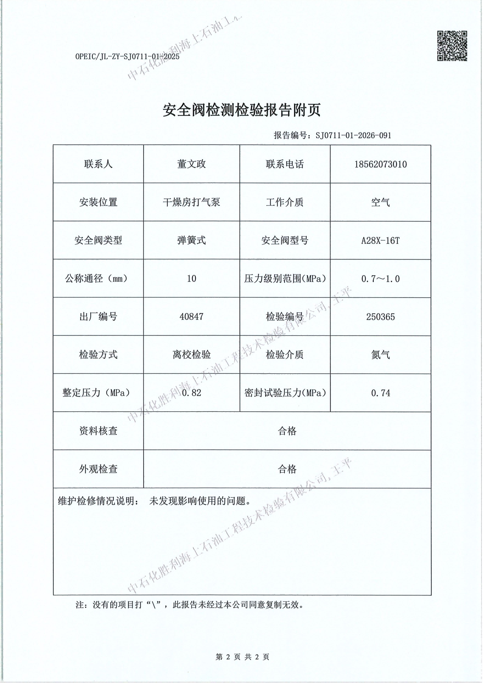 2、检验内容:安全阀检测检验