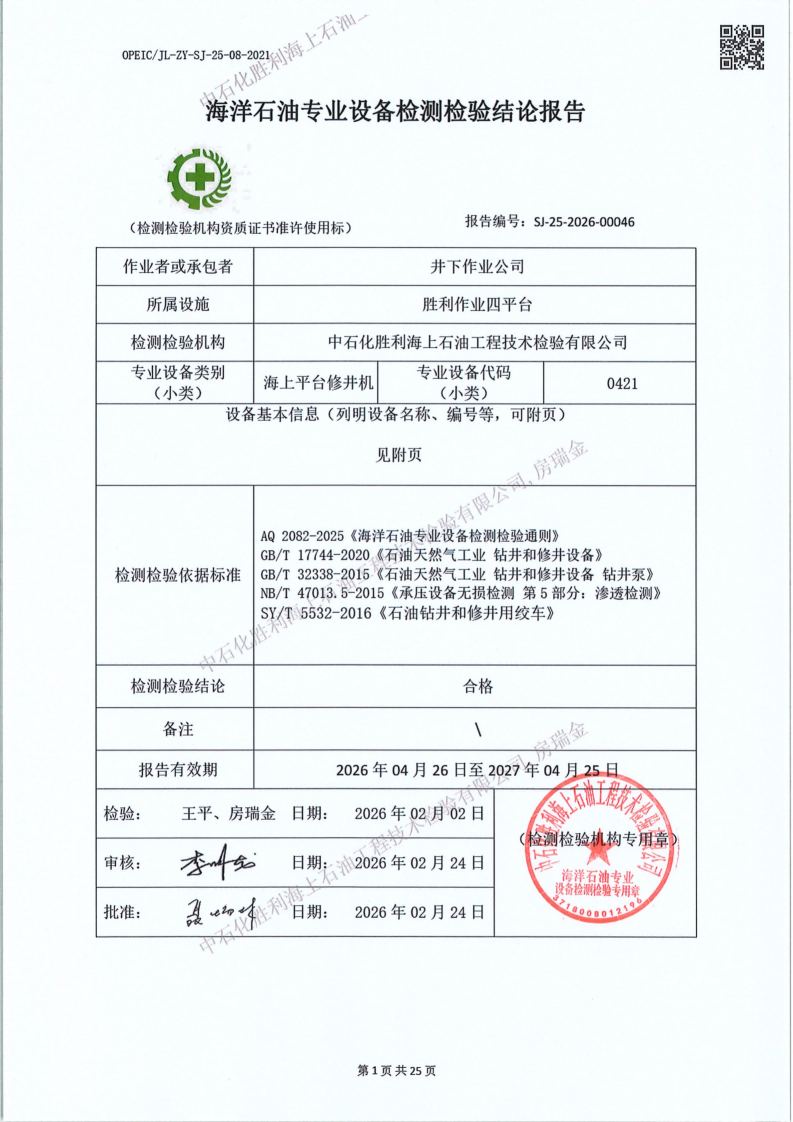 石化胜利海上石油工技术检验有限公司