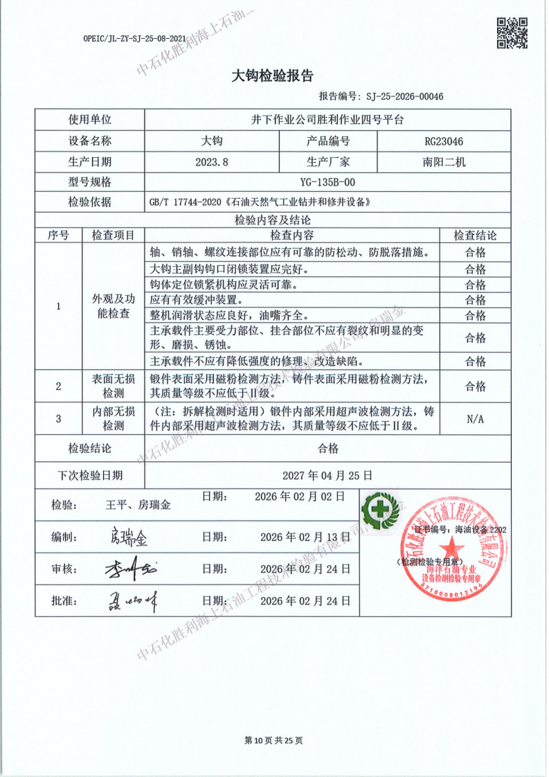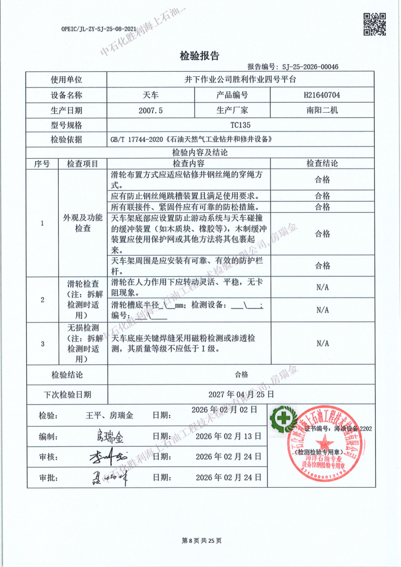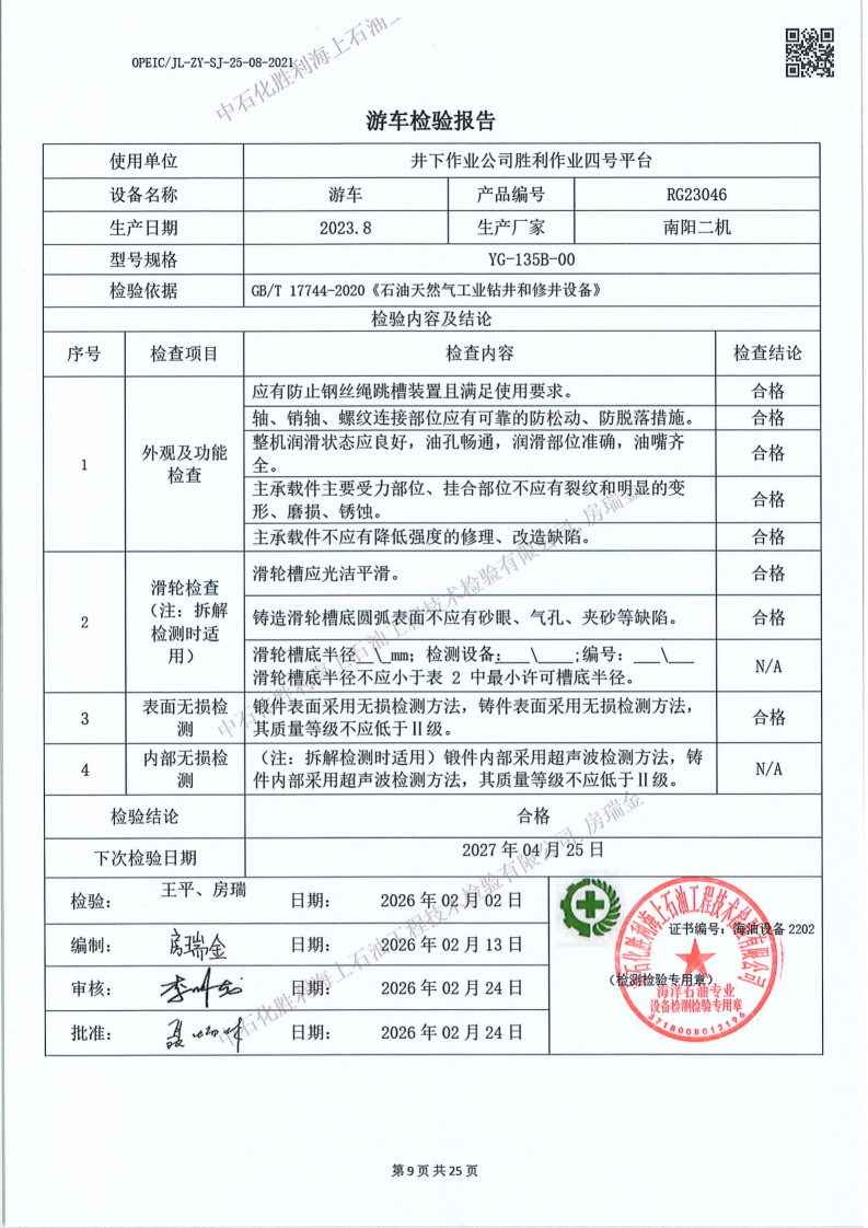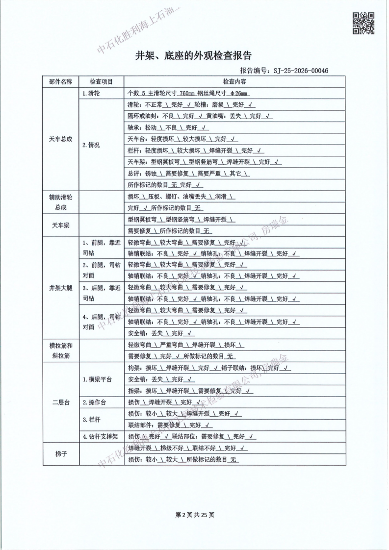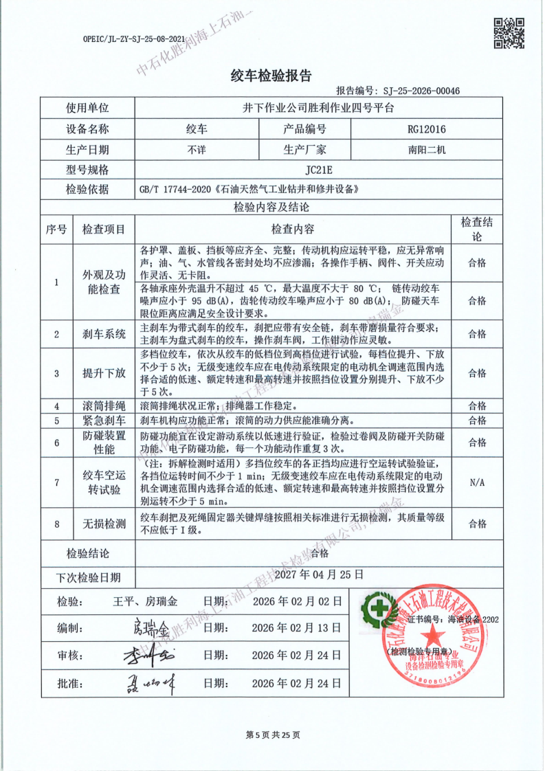 2、检验内容:钻(修)井设备检验
