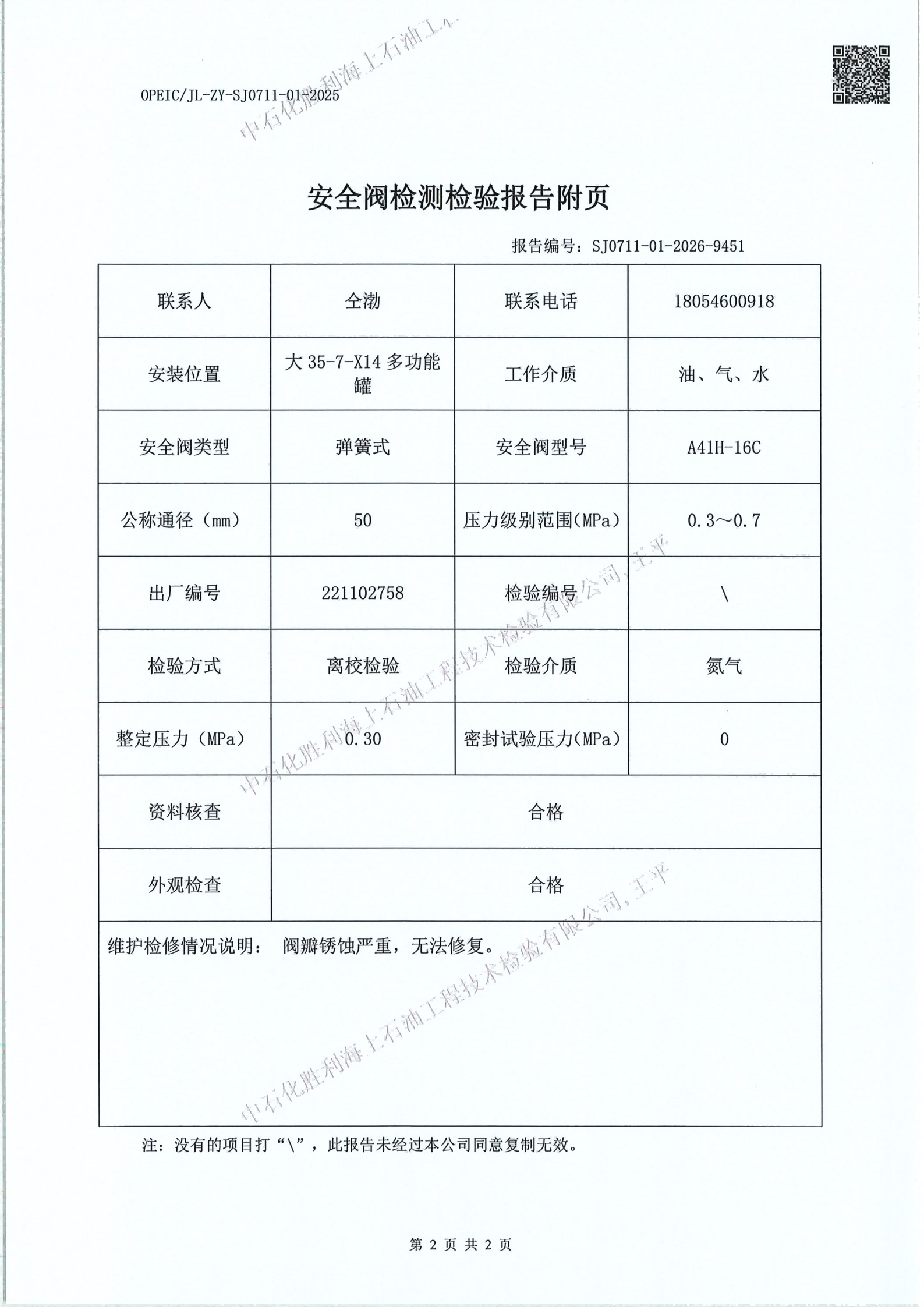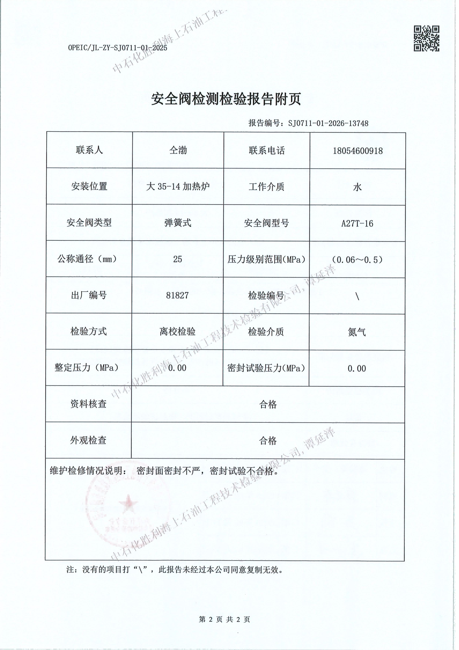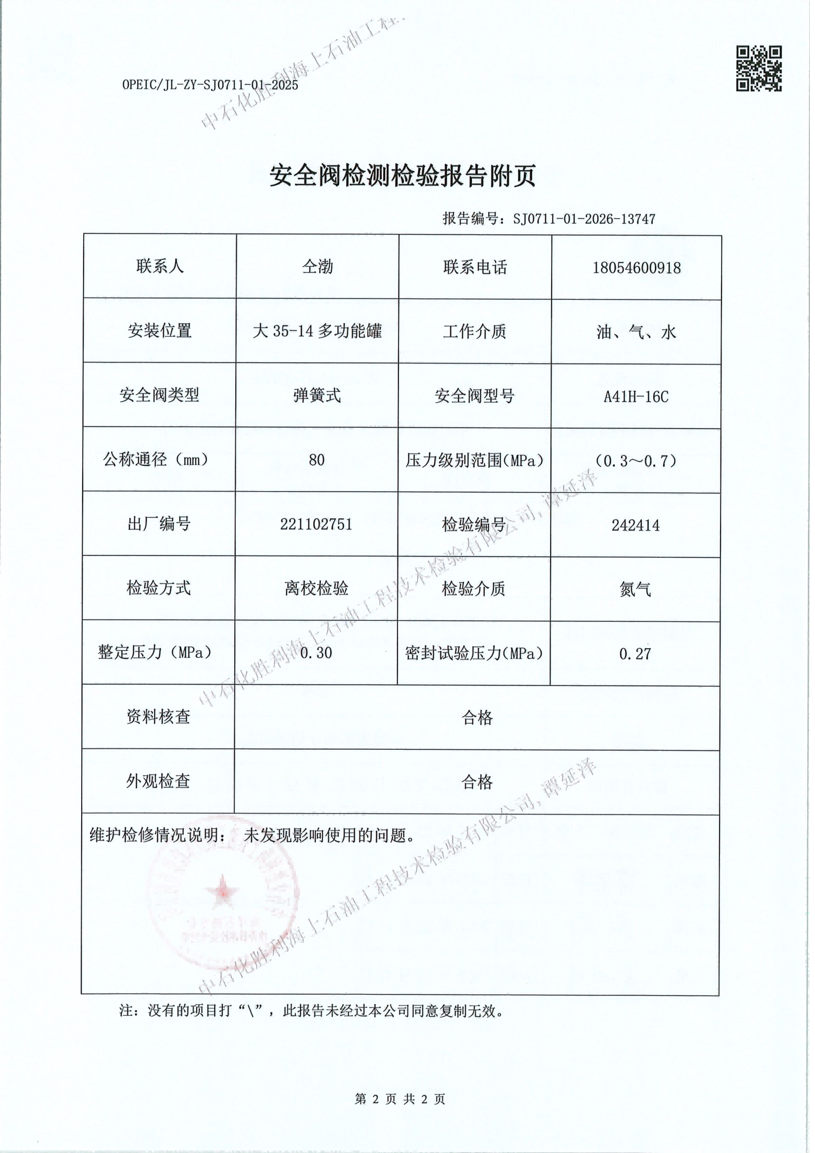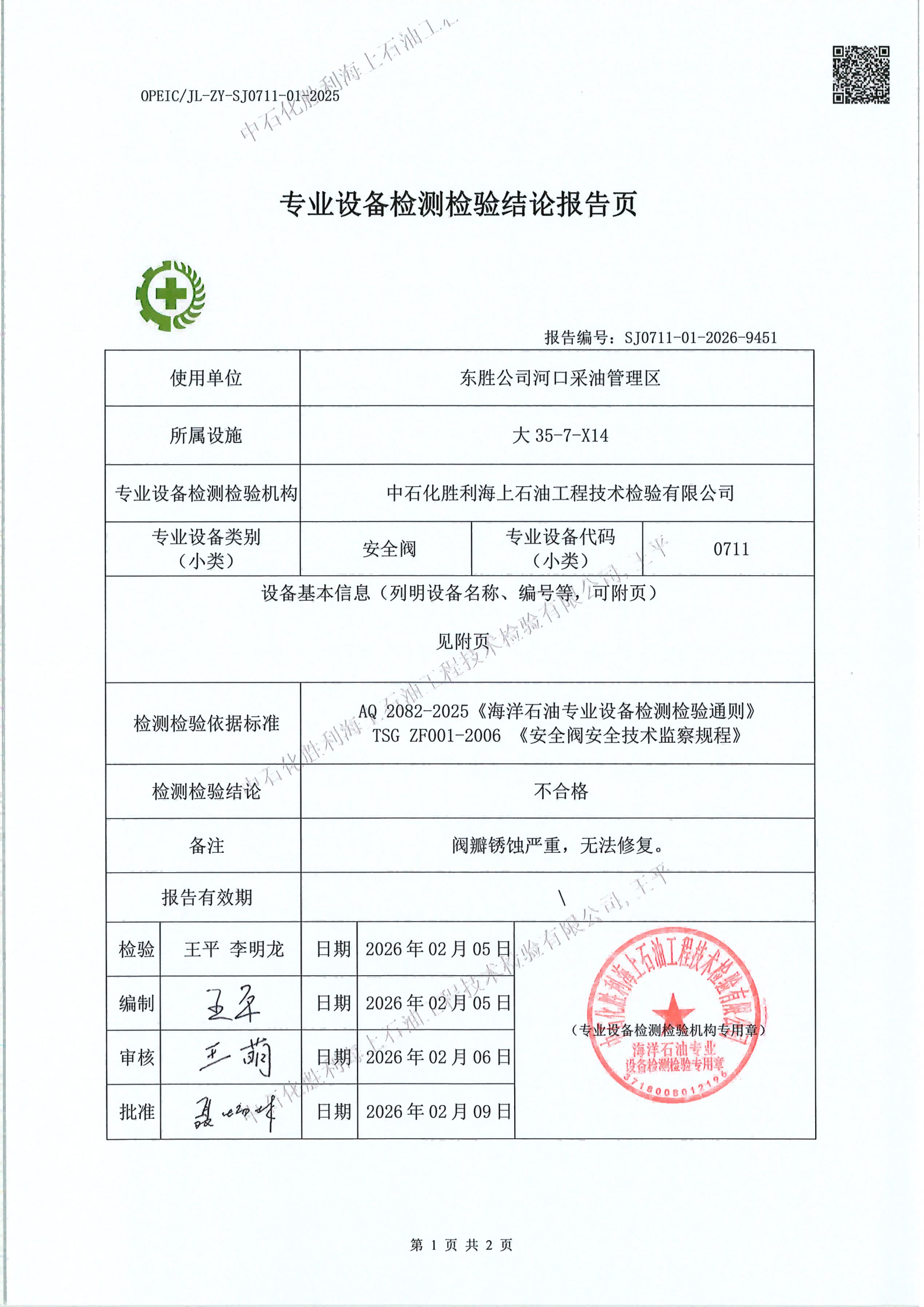 石化胜利海上石油工技术检验有限公司