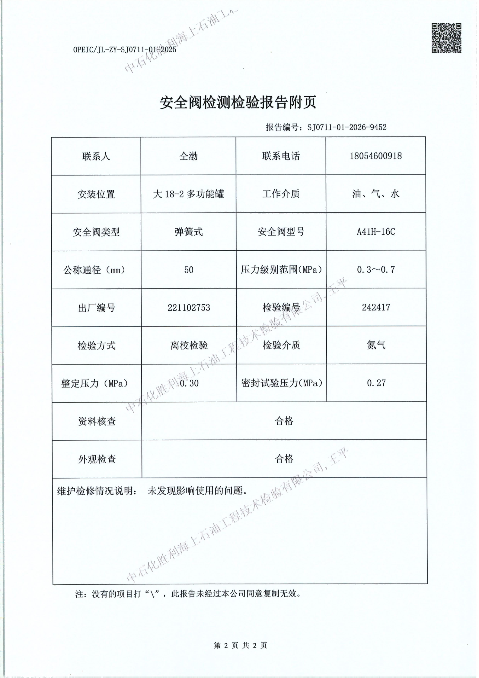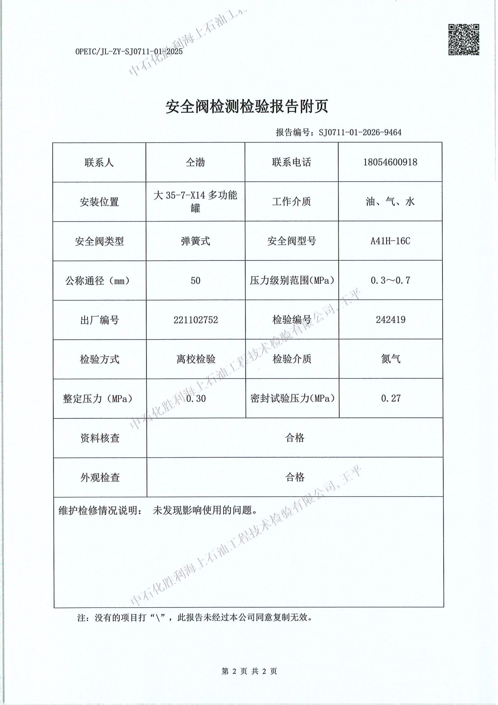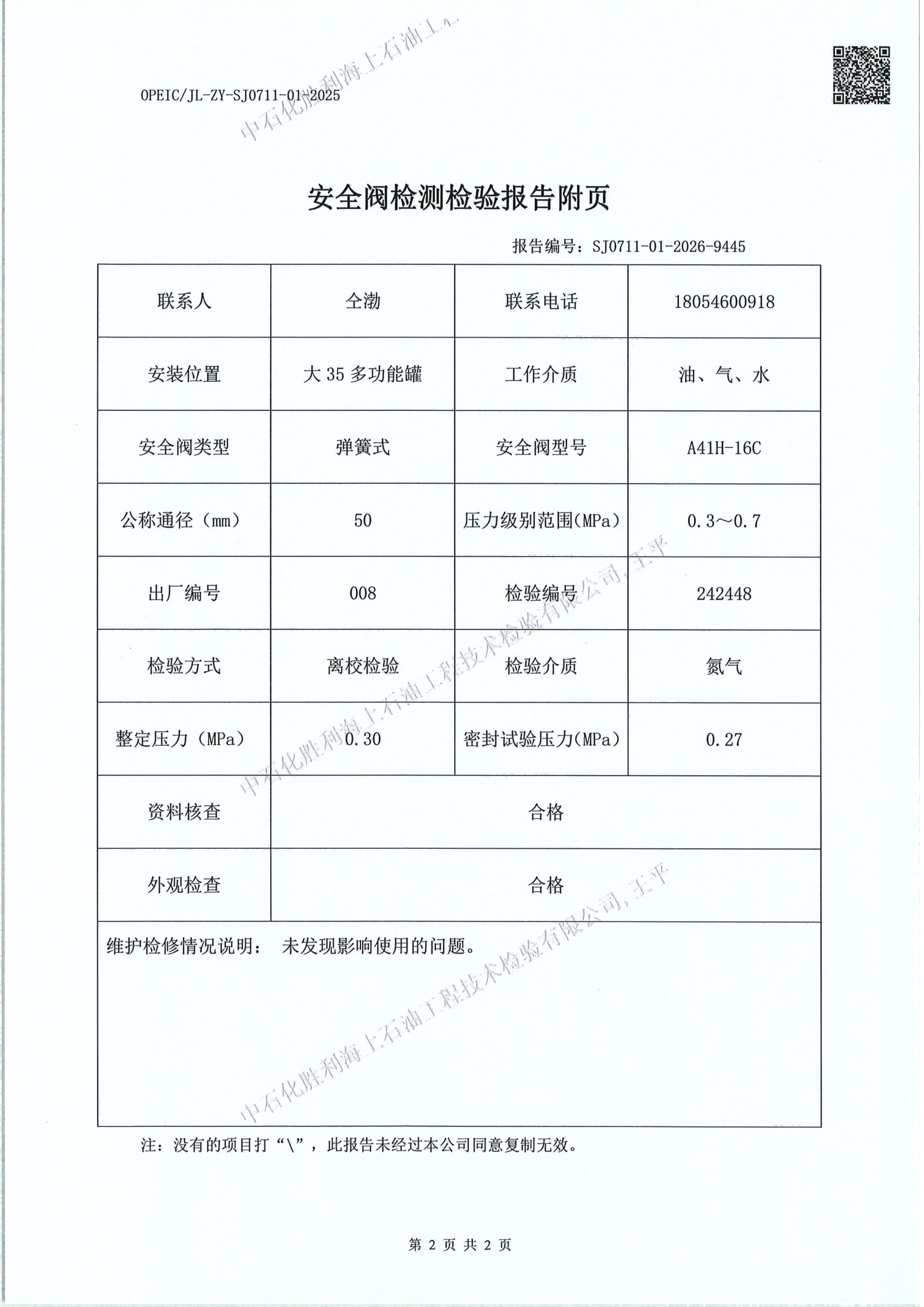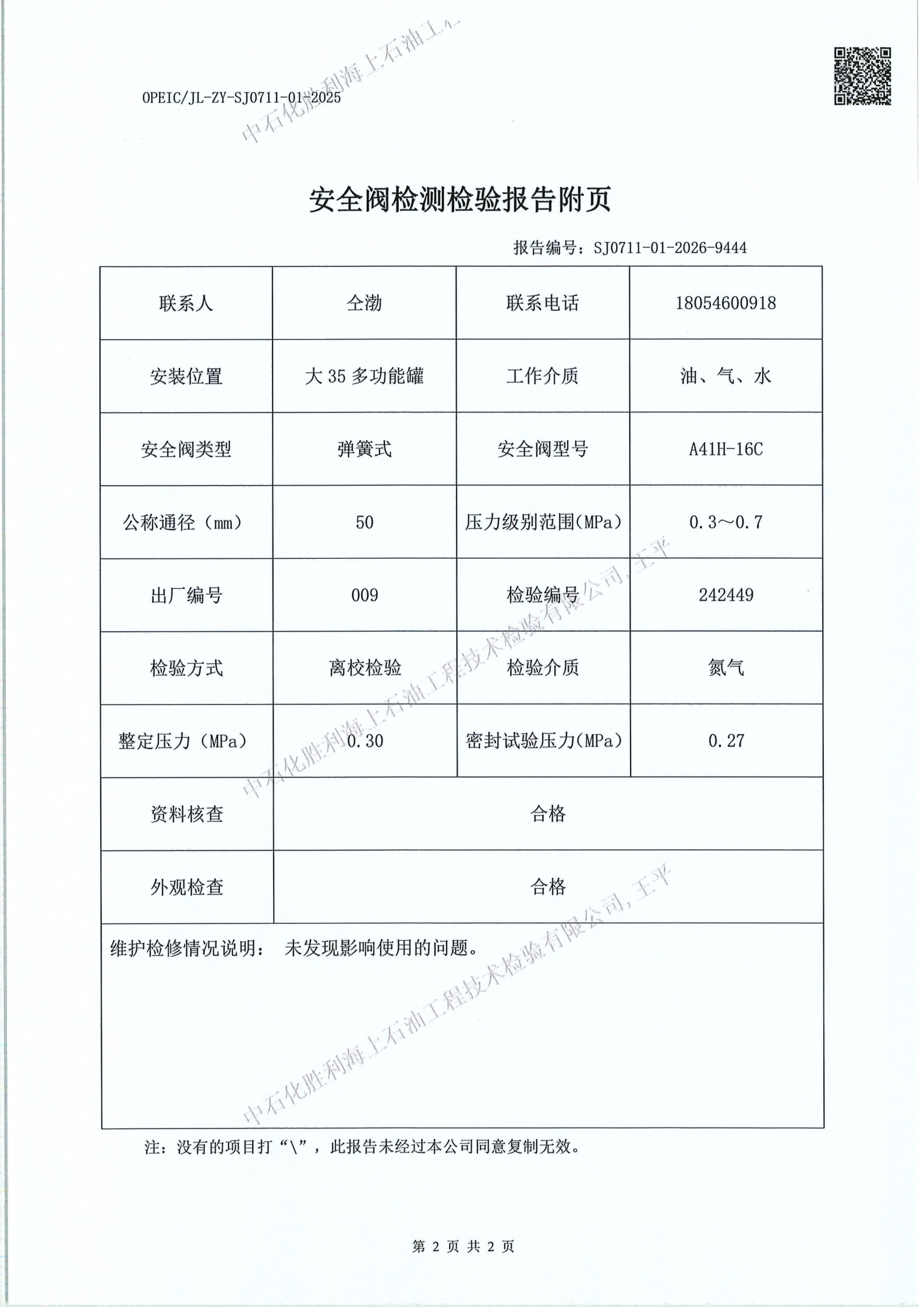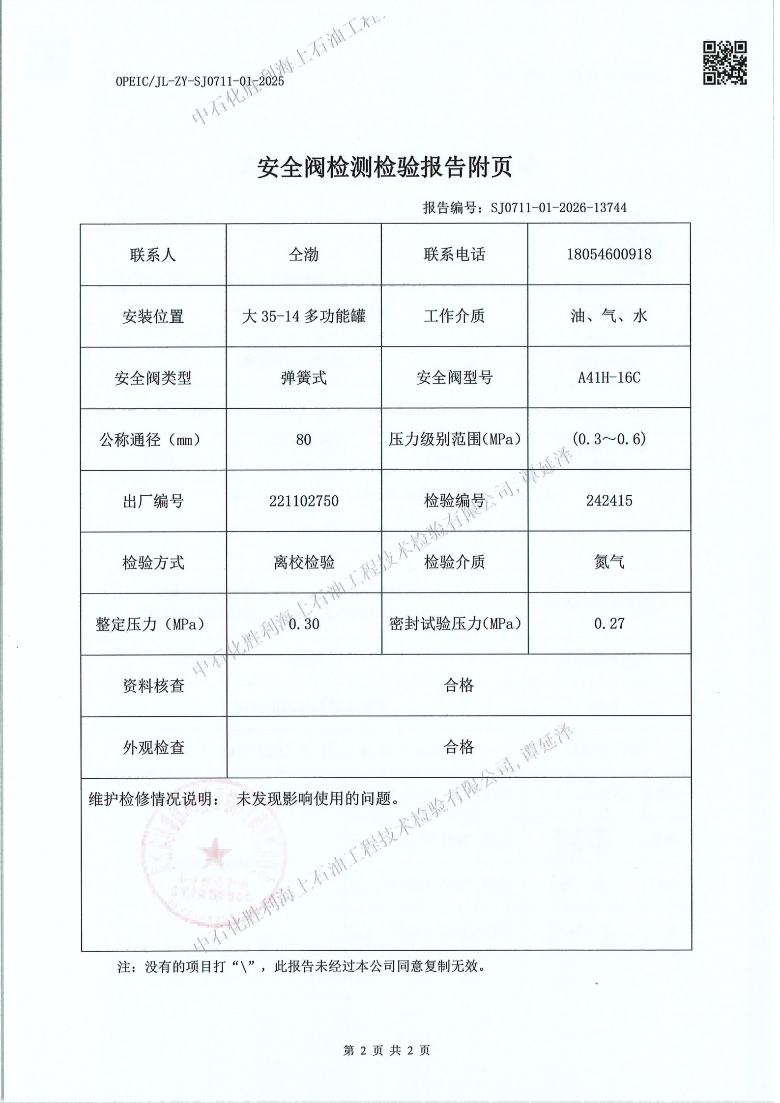 石化胜利海上石油工技术检验有限公司