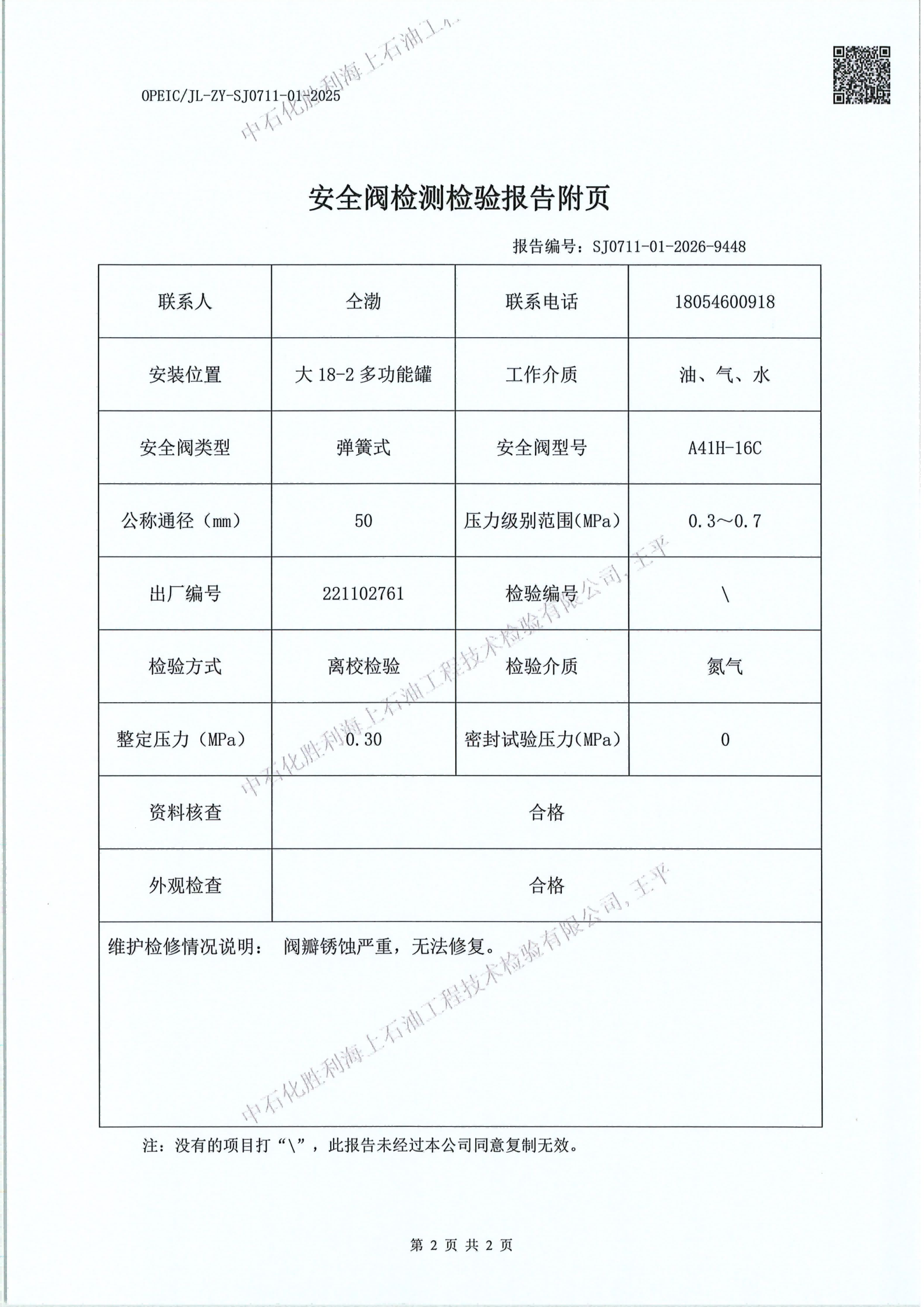 2、检验内容:安全阀检测检验
