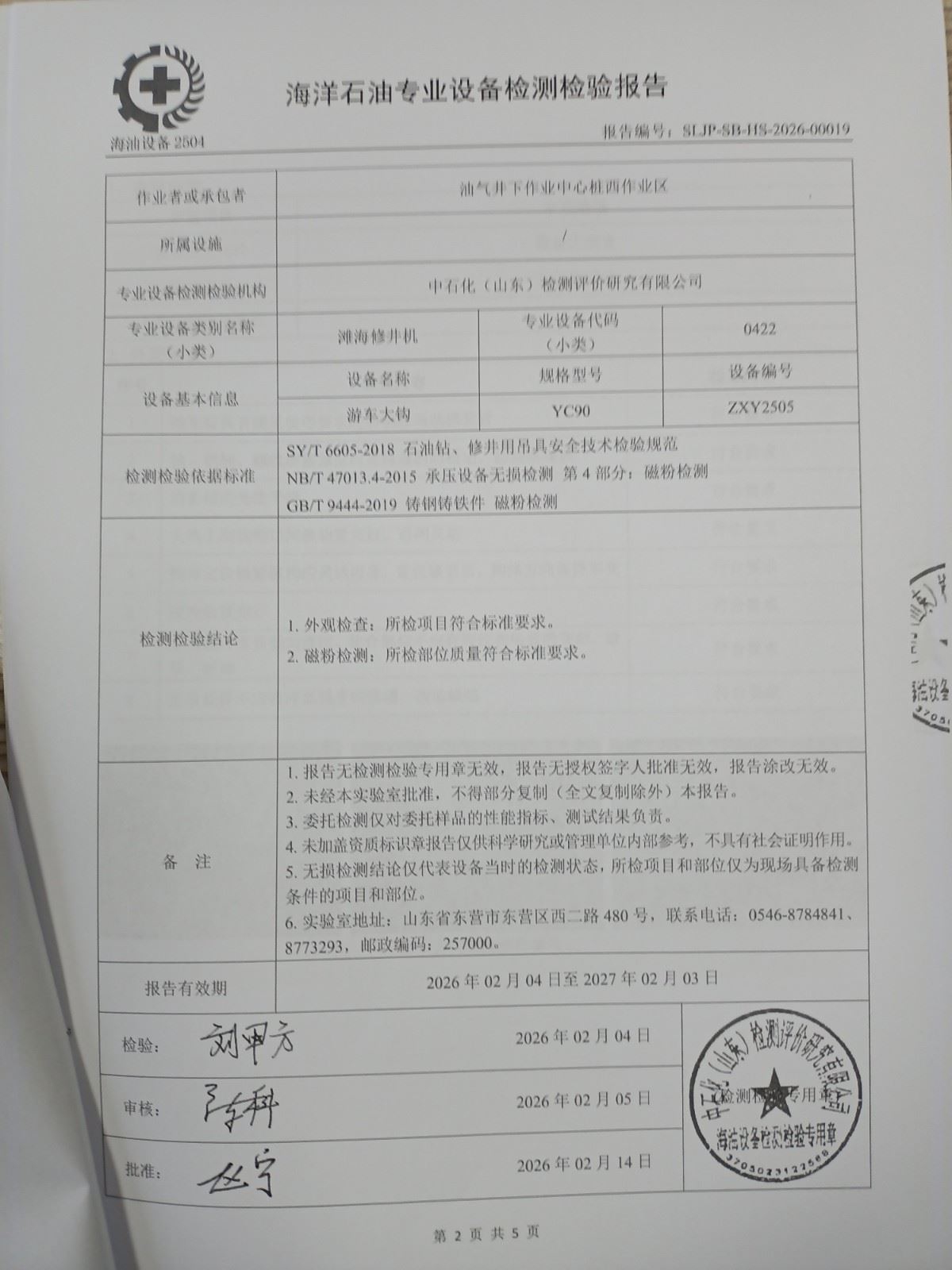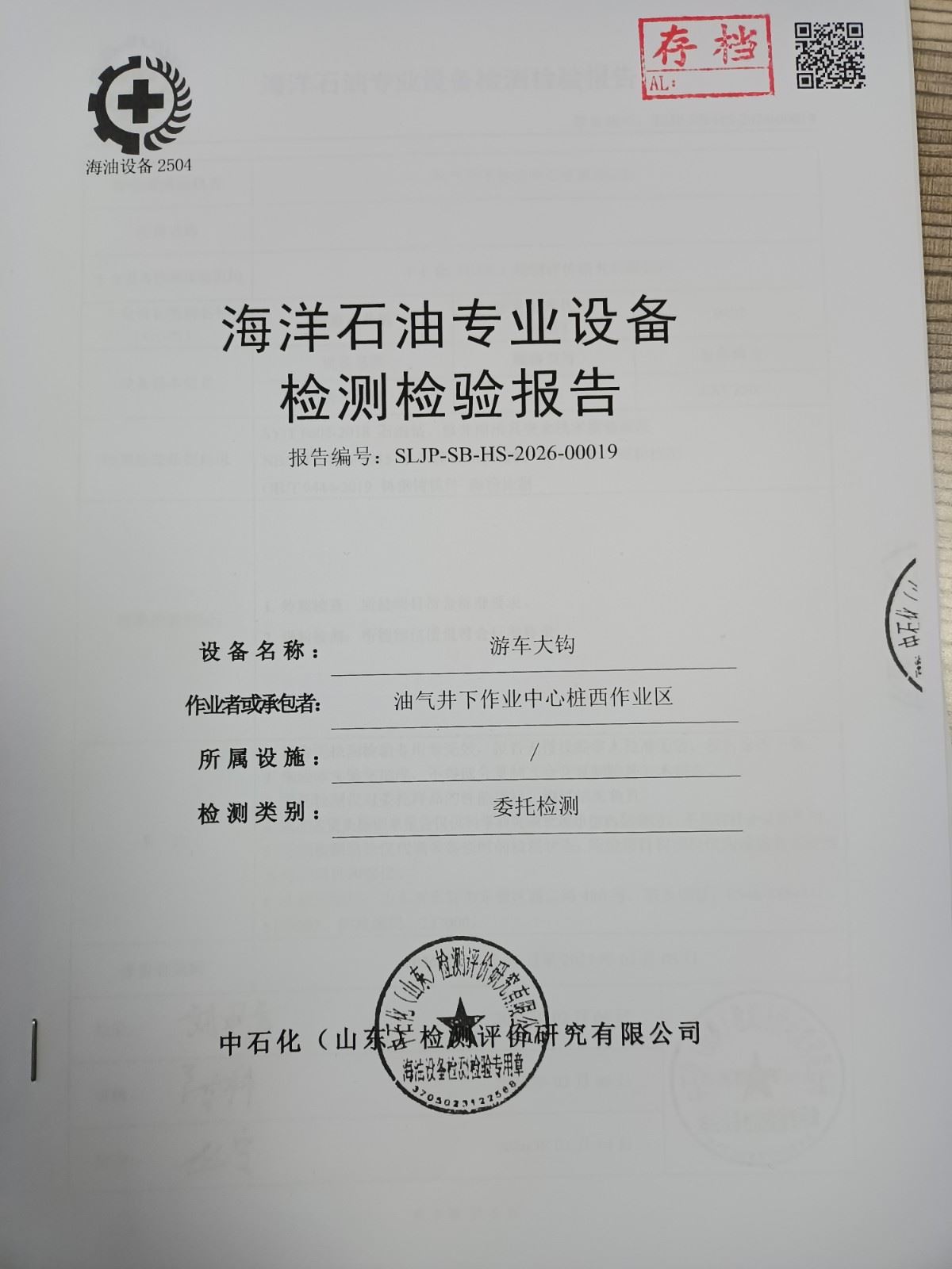油气井下作业中心桩西作业区游车大钩检测