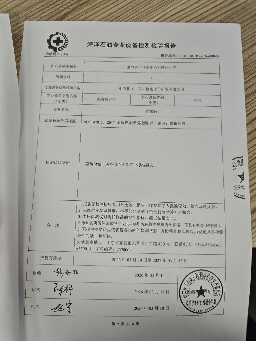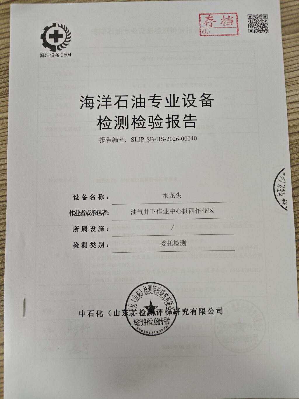 报告名称 | 桩西作业区水龙头检测 |
