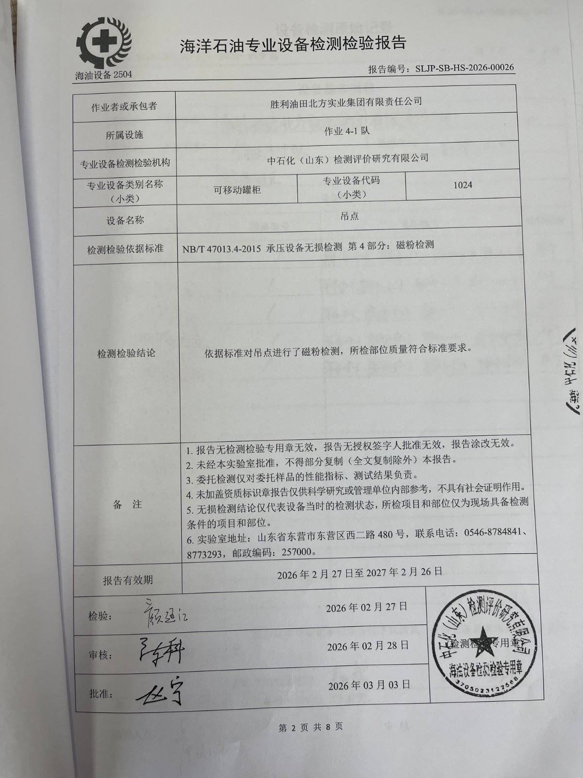 依据标准对吊点进行了磁粉检测,所检部位质量符合标准要求