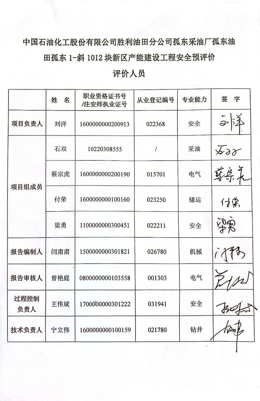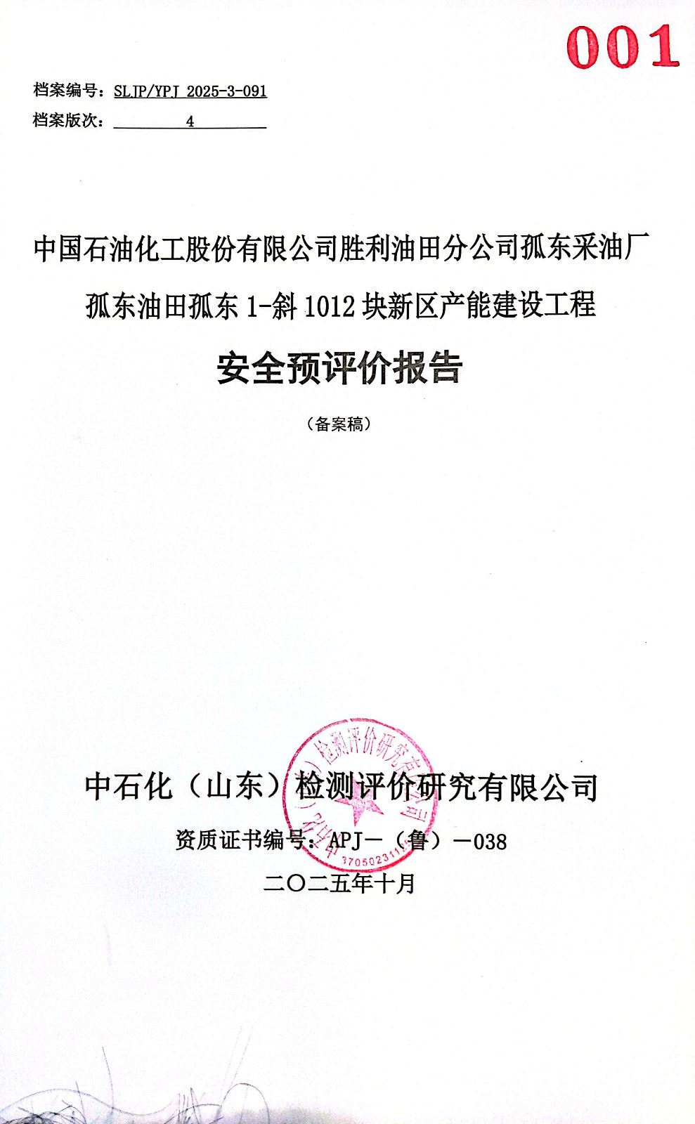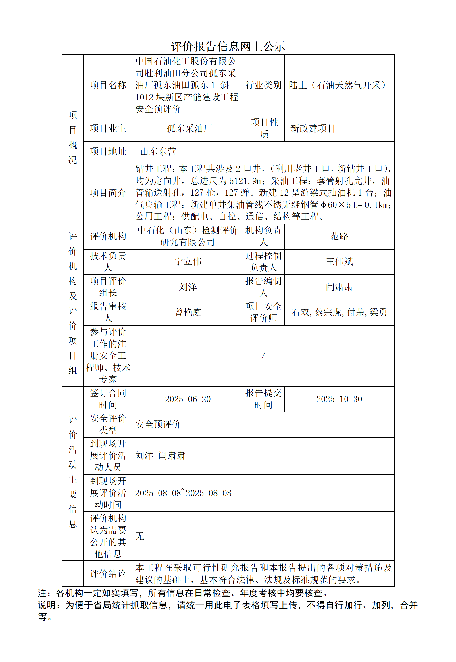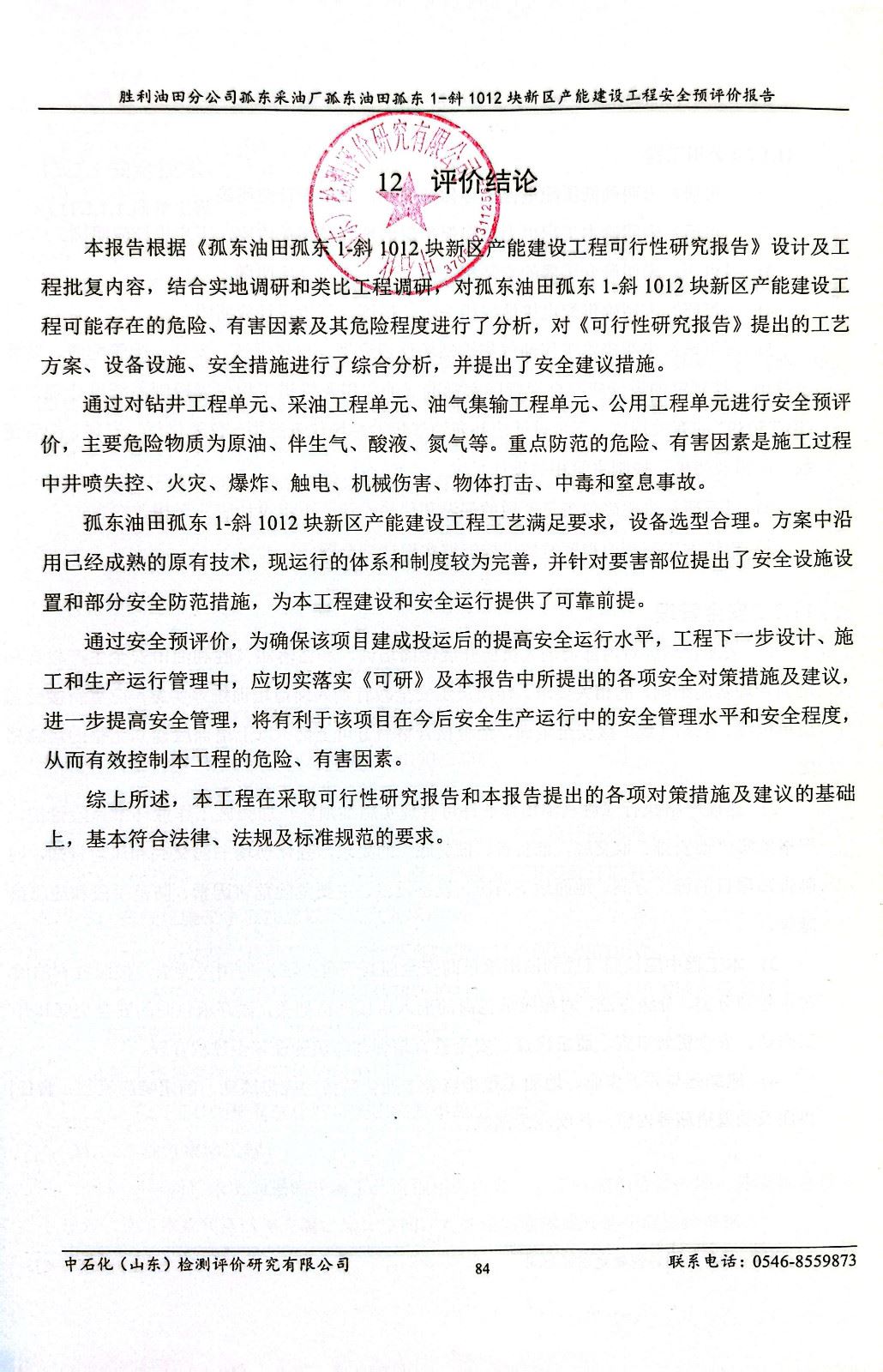 中国石油化工股份有限公司胜利油田分公司孤东采油厂孤东油田孤东1-斜1012块新区产能建设工程安全预评价